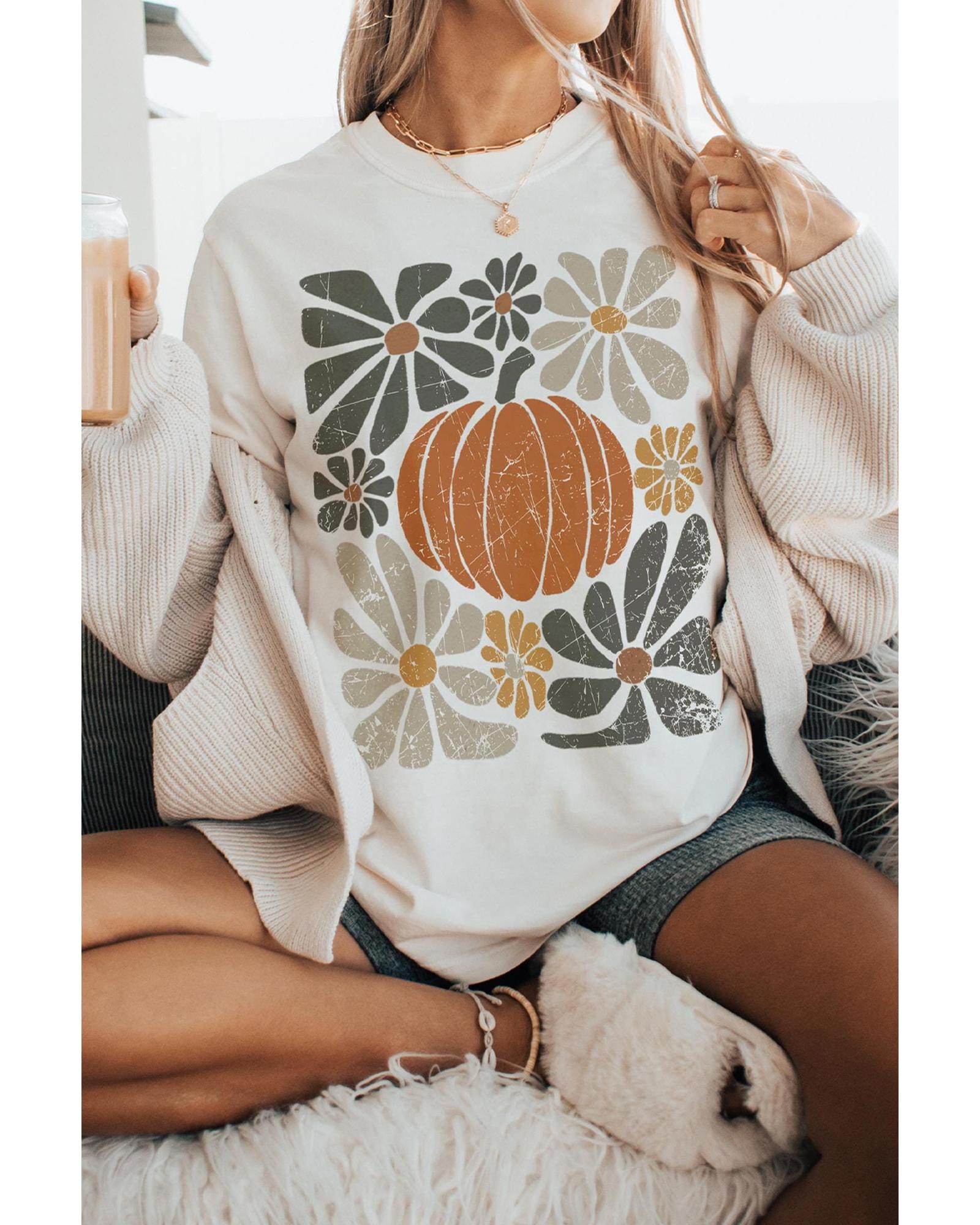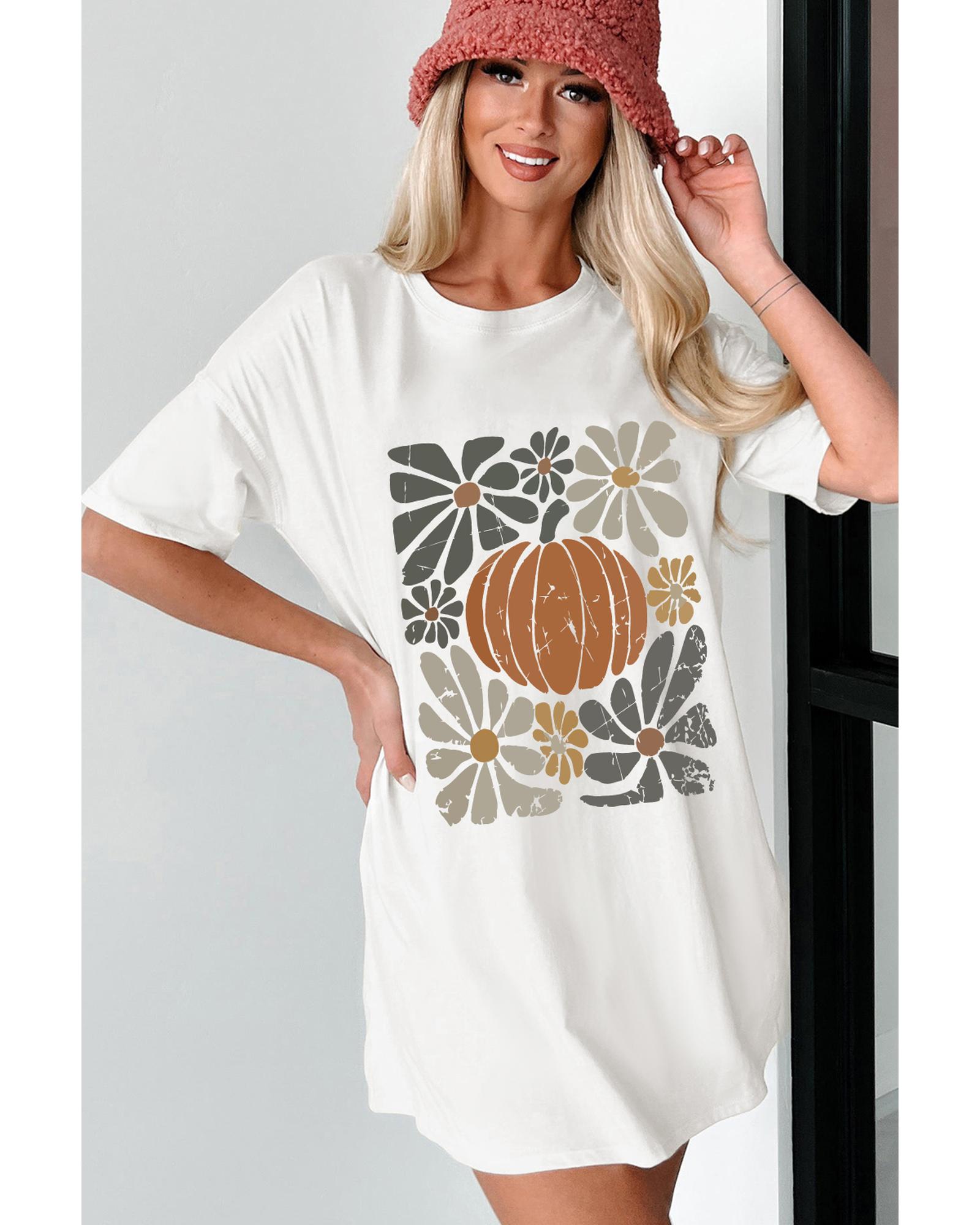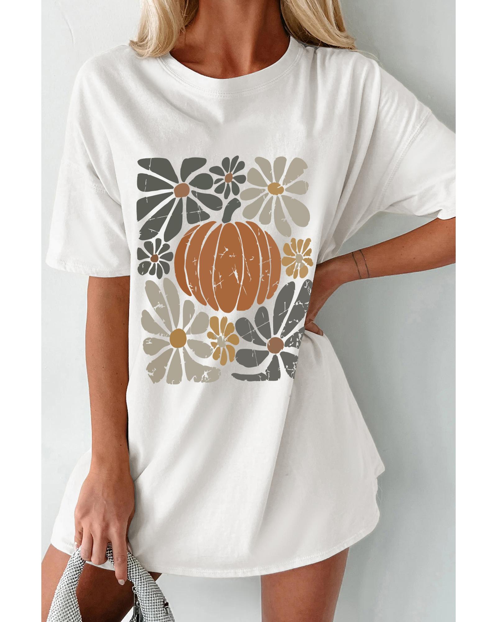 - White Thanksgiving Pumpkin Print Loose Crewneck Tunic T