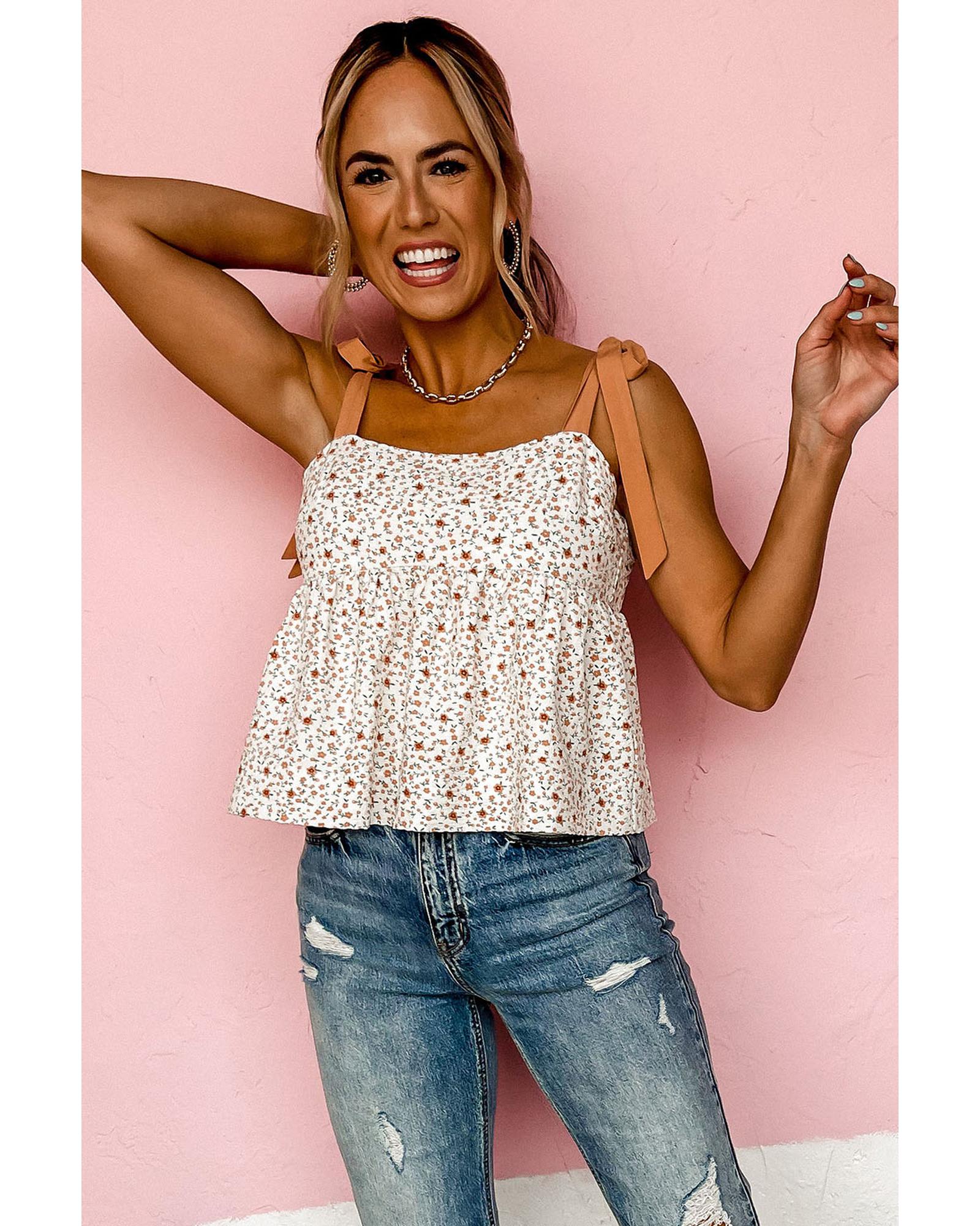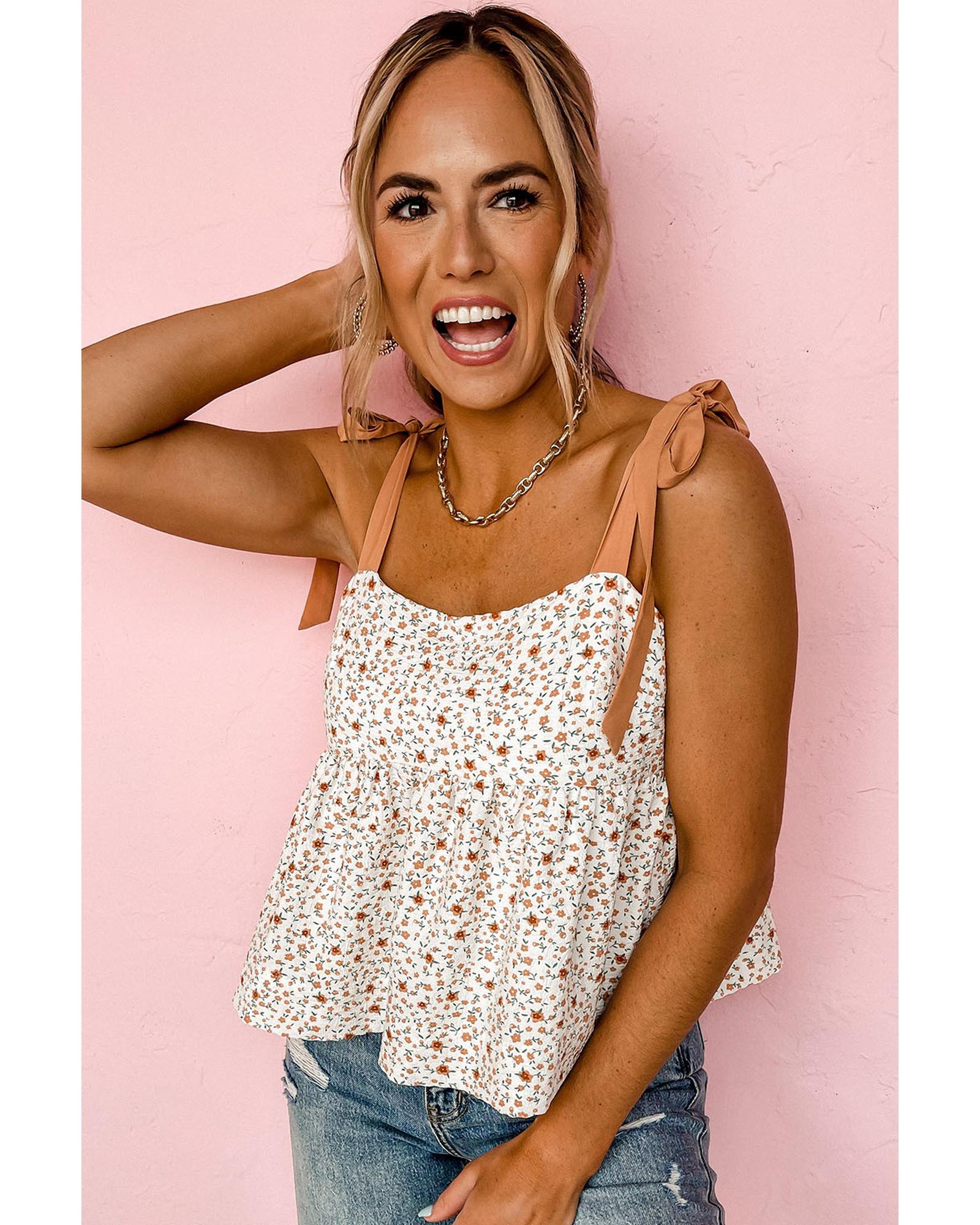 White Tied Shoulder Floral Print Babydoll Tank – XL