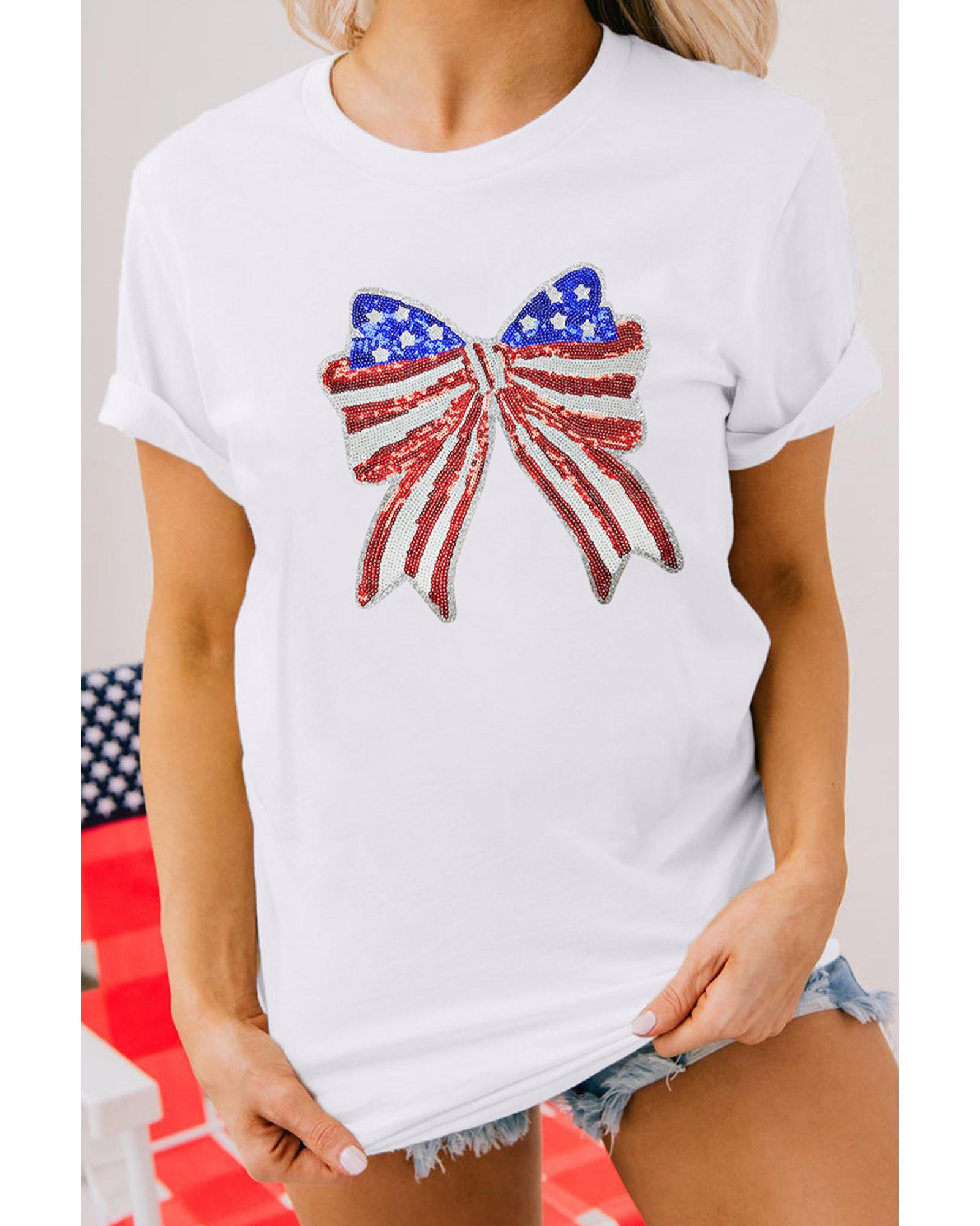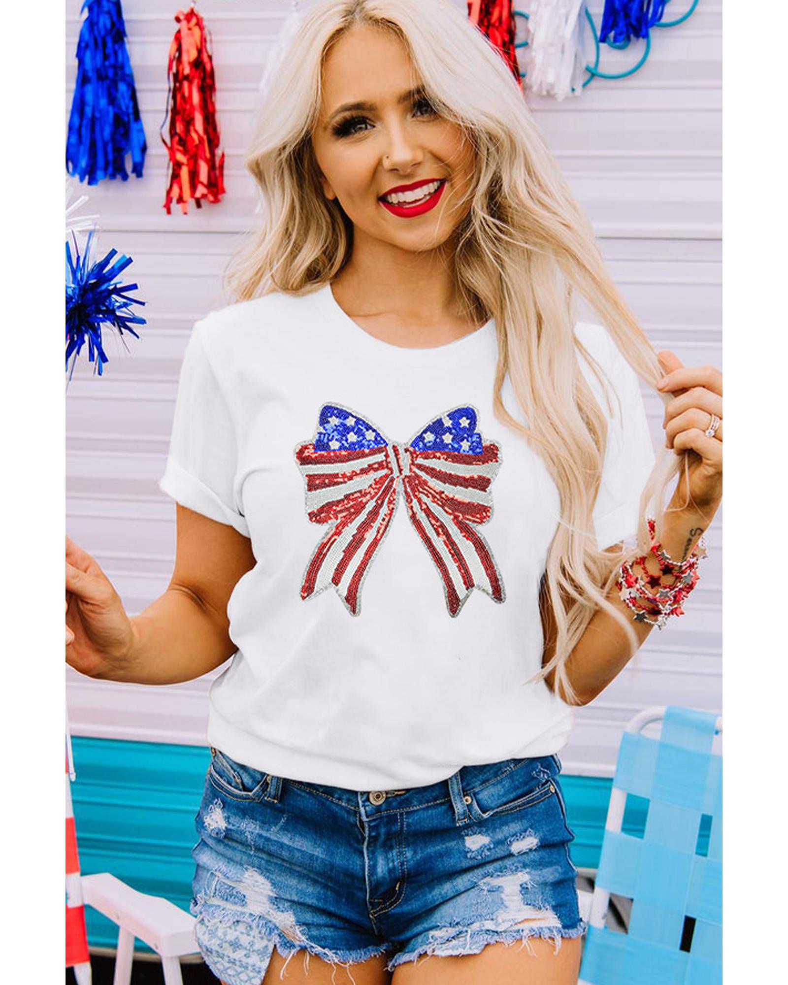 White USA Flag Bow Knot Patched Crew Neck T Shirt – 2XL