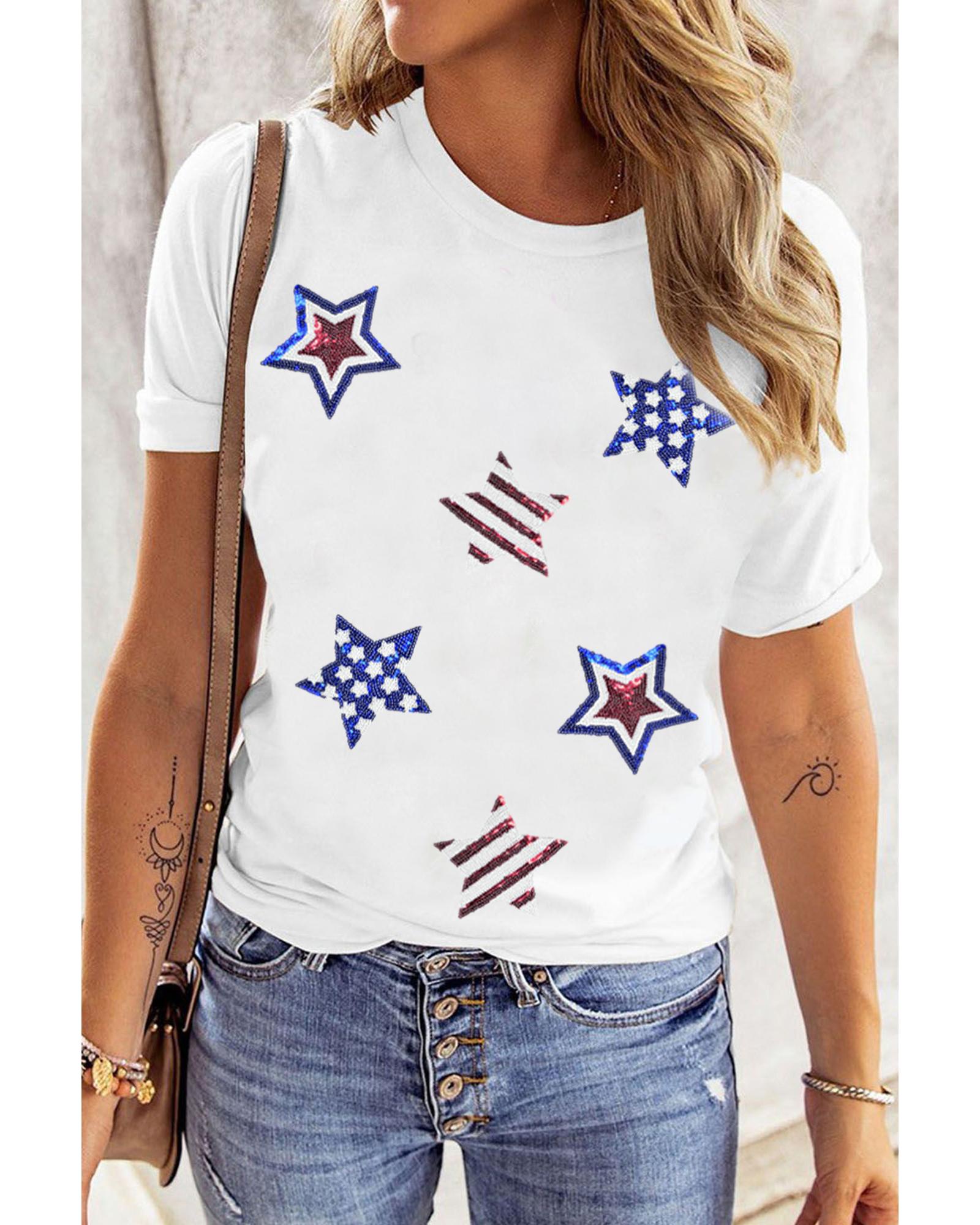 White USA Sequin Stars Patched Casual T Shirt – 2XL