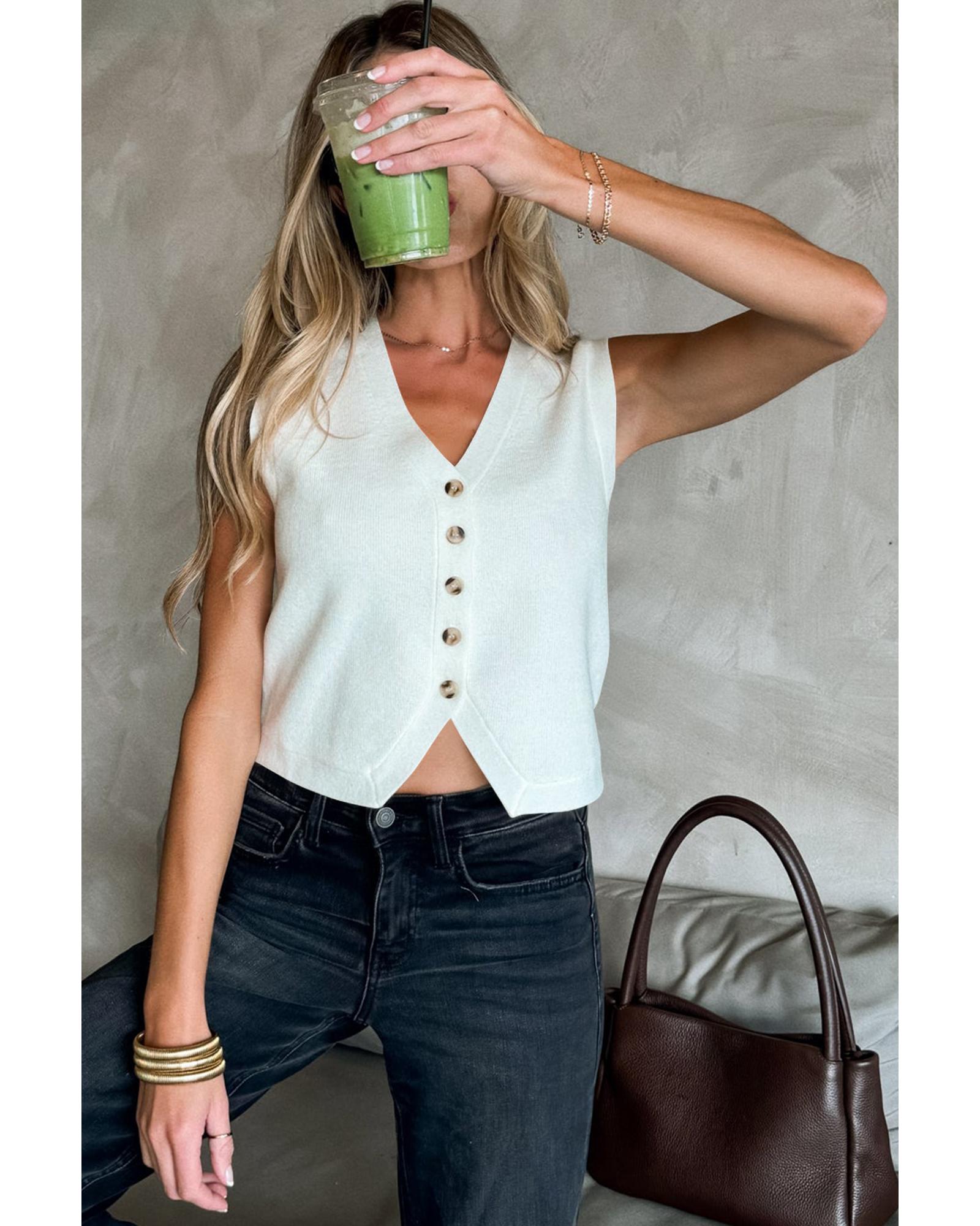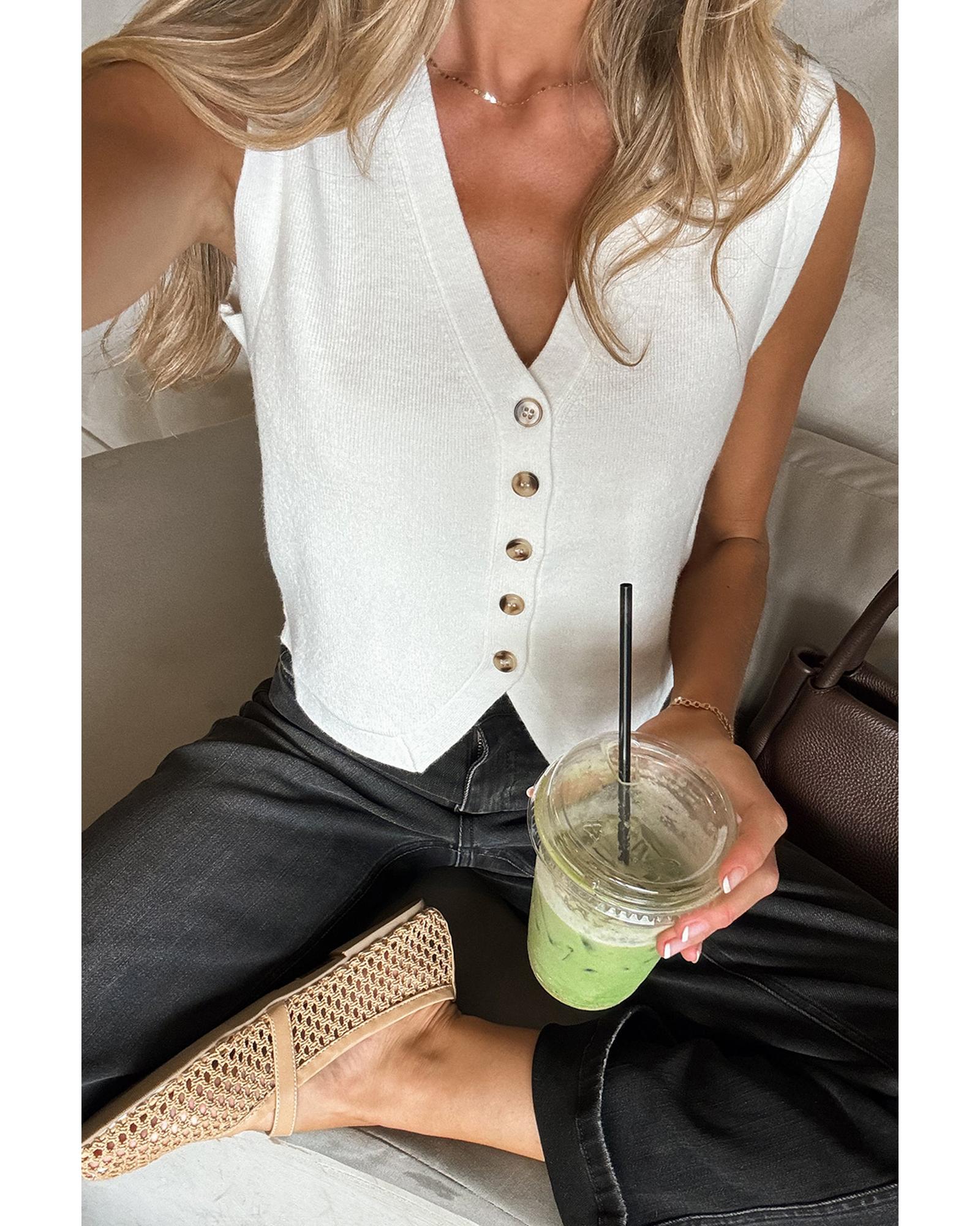 - White V Neck Buttoned Sweater Vest