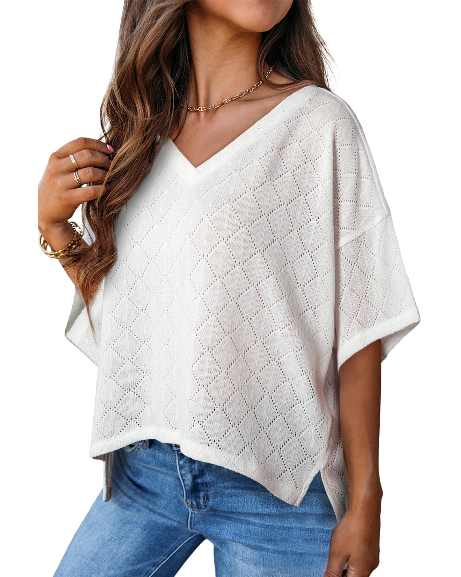 Multicolour Colorblock Patchwork V-Neck Loose Sleeve Knit Top - L