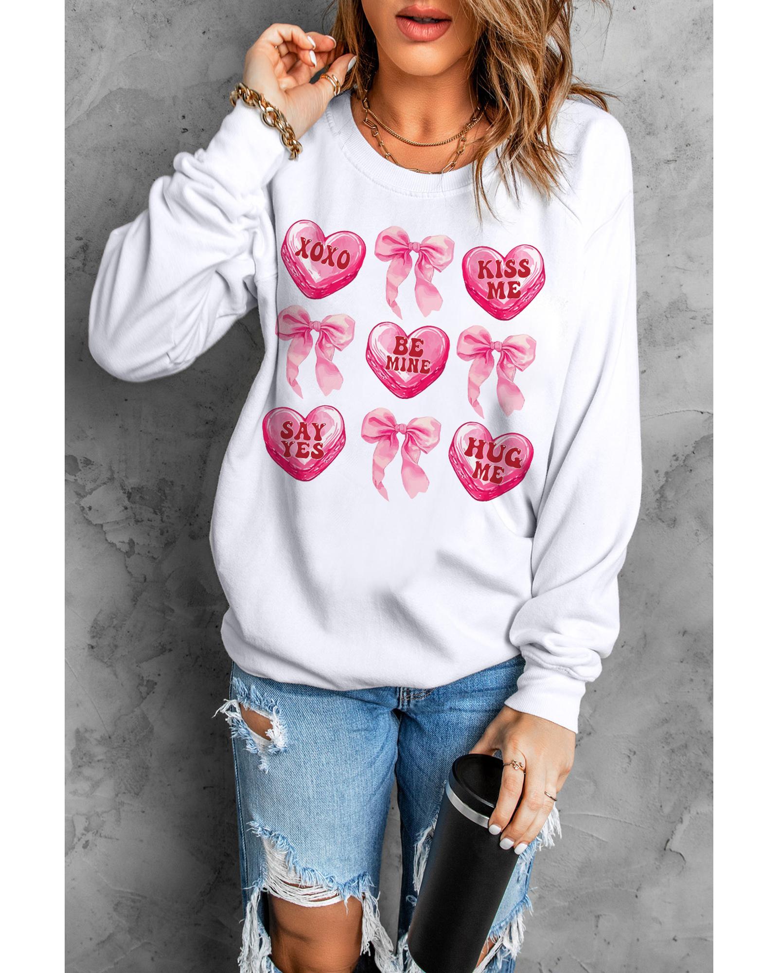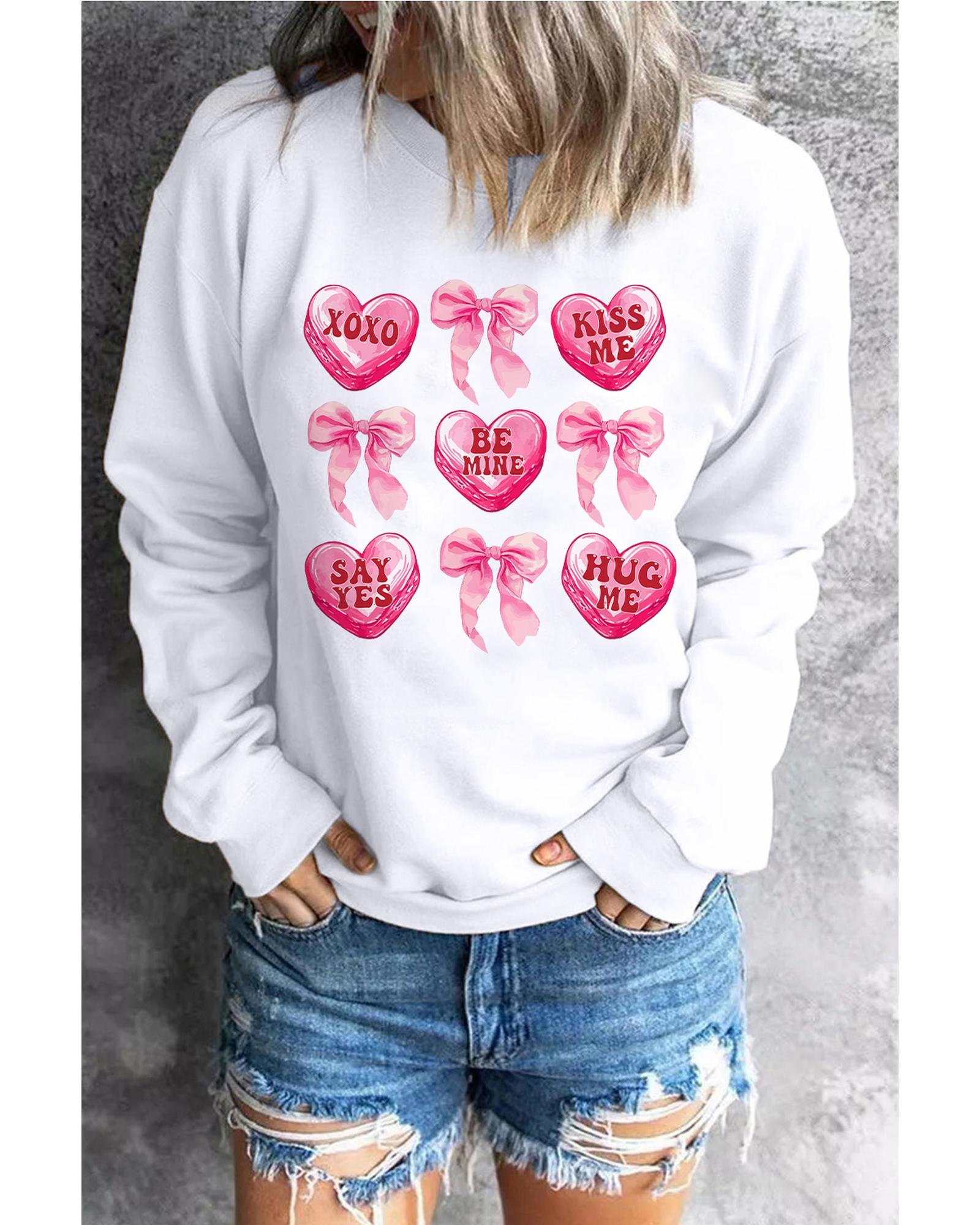 White Valentine Candy Heart & Bow Graphic Sweatshirt – L
