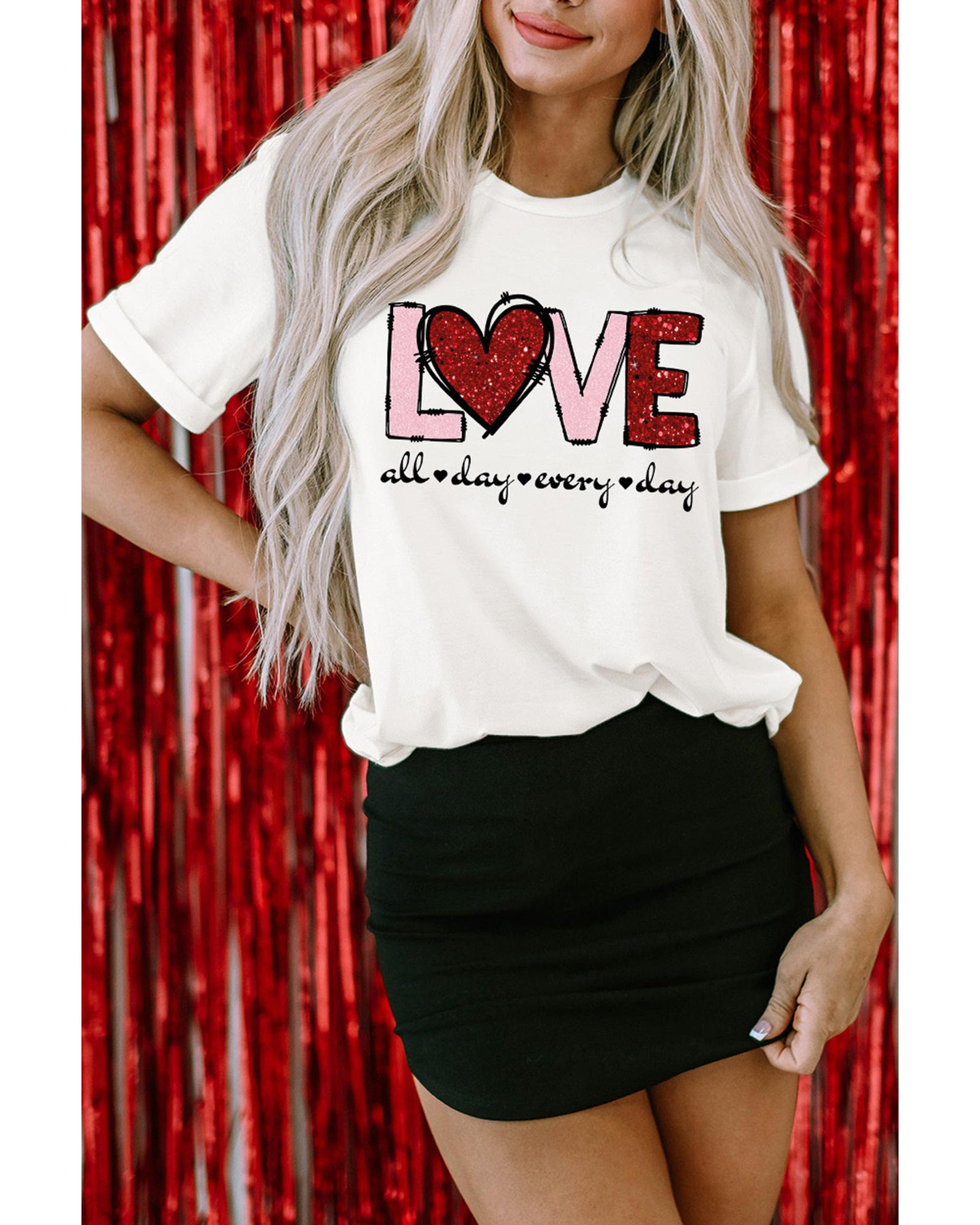 White Valentine LOVE Heart Shape Crew Neck Graphic Tee – M