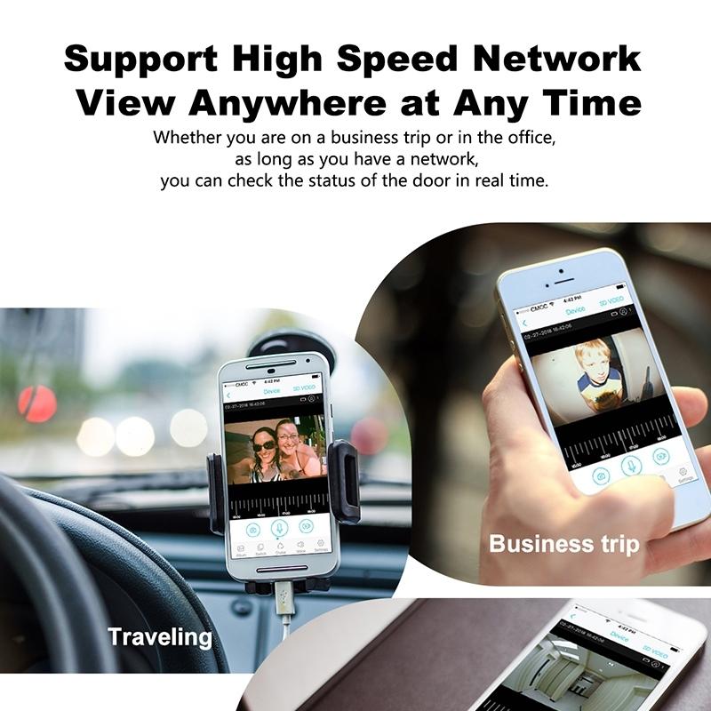 • Infrared night vision function automatically detects guests and wakes up mobile phone for notification