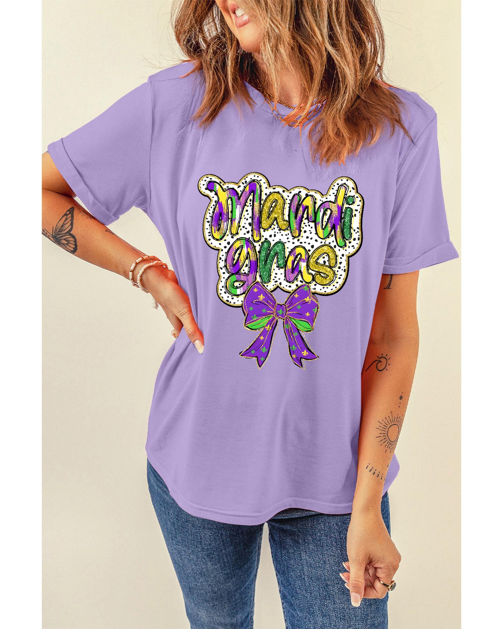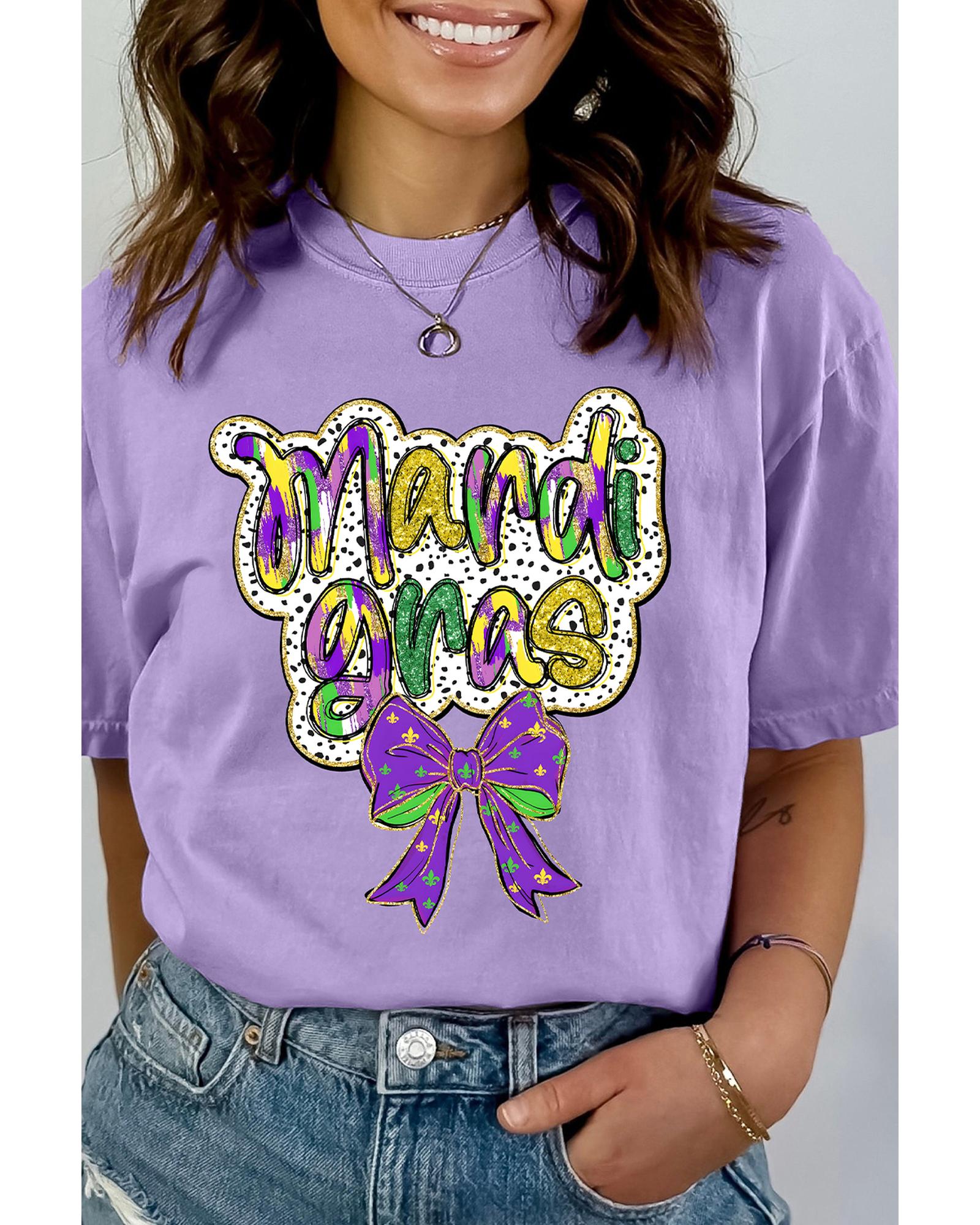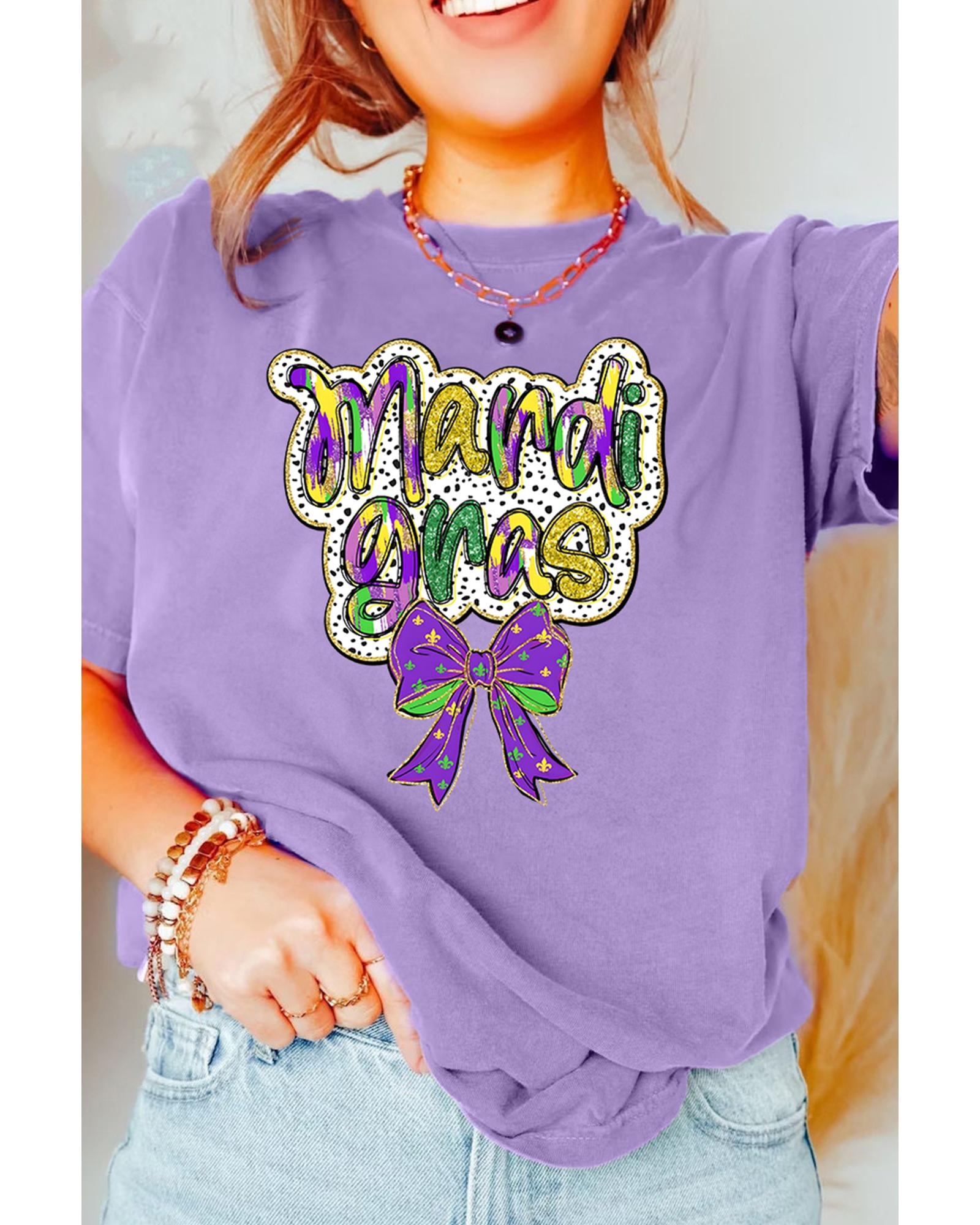 Wisteria mardi gras Bow Printed Crewneck Holiday T Shirt – XL