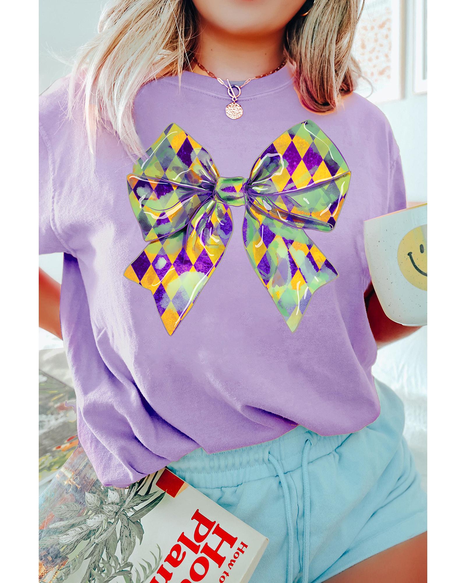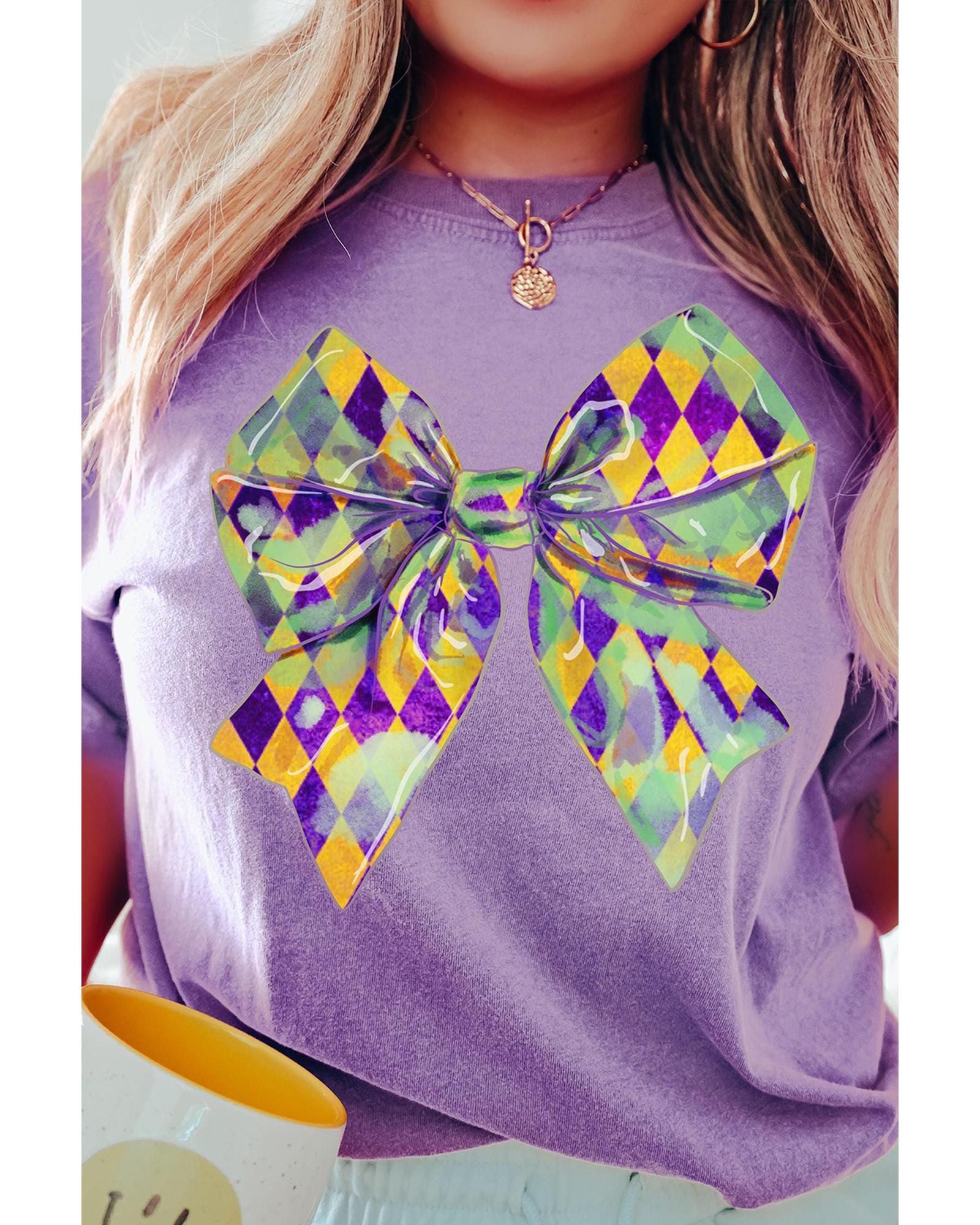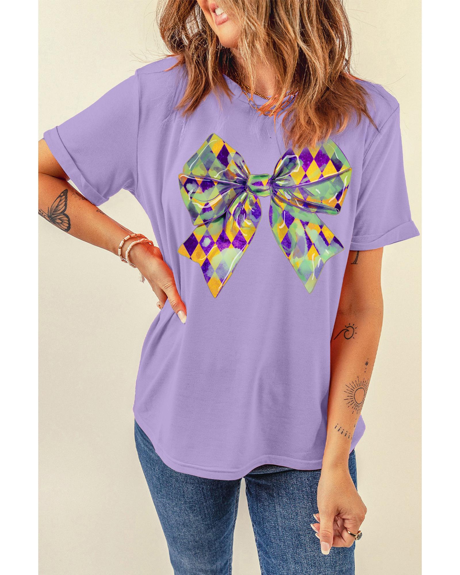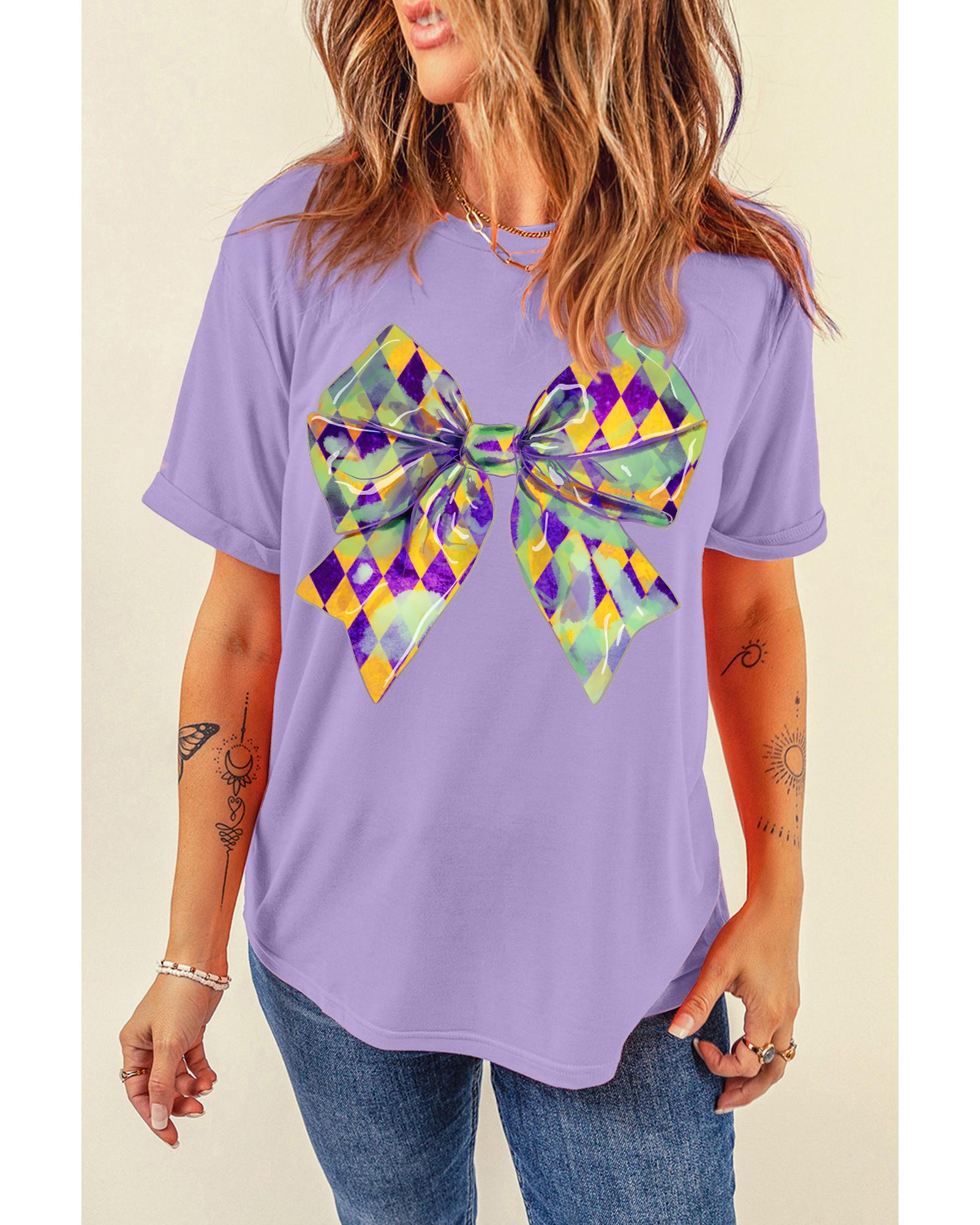 Wisteria Mardi Gras Bowknot Pattern Crew Neck T Shirt – S