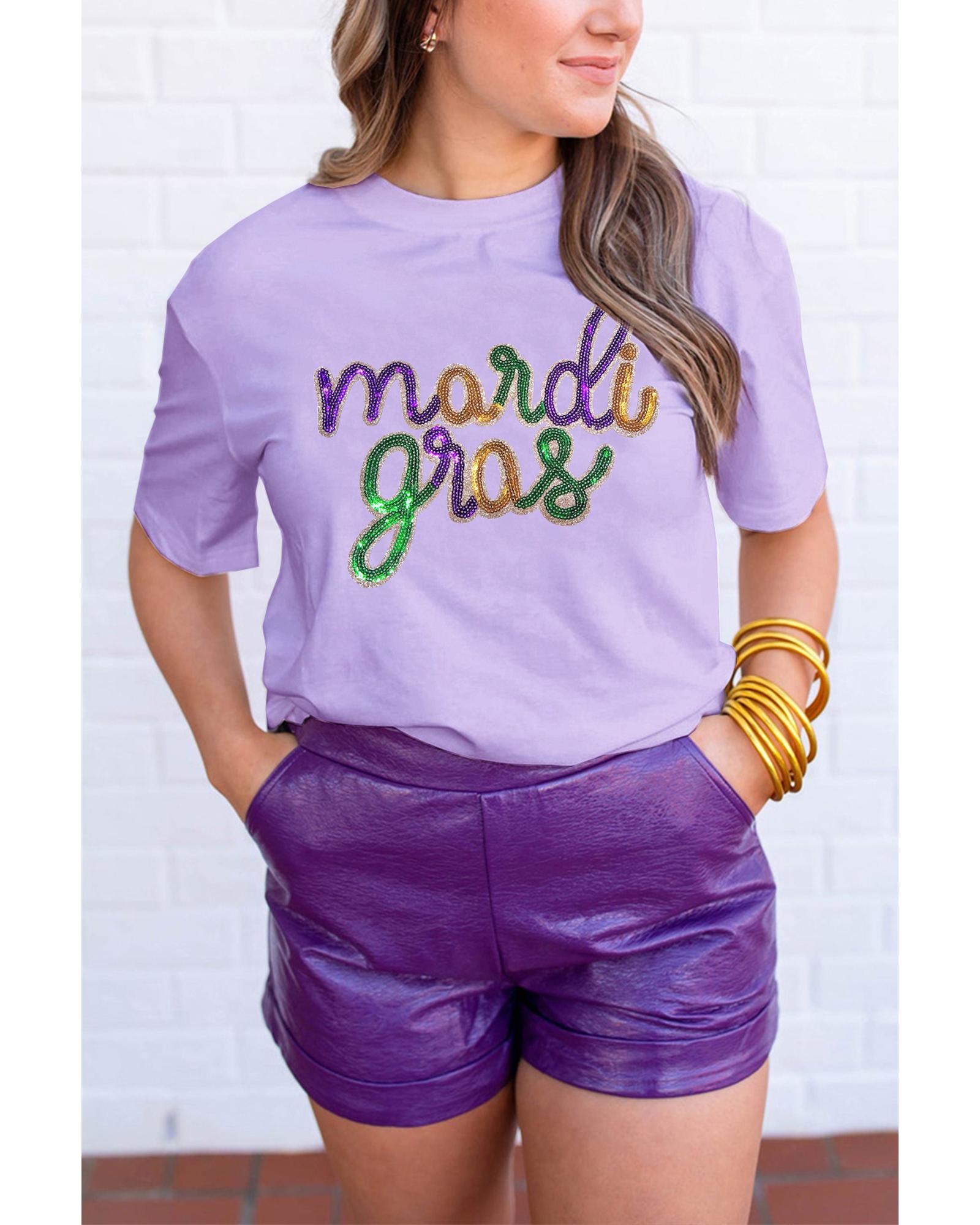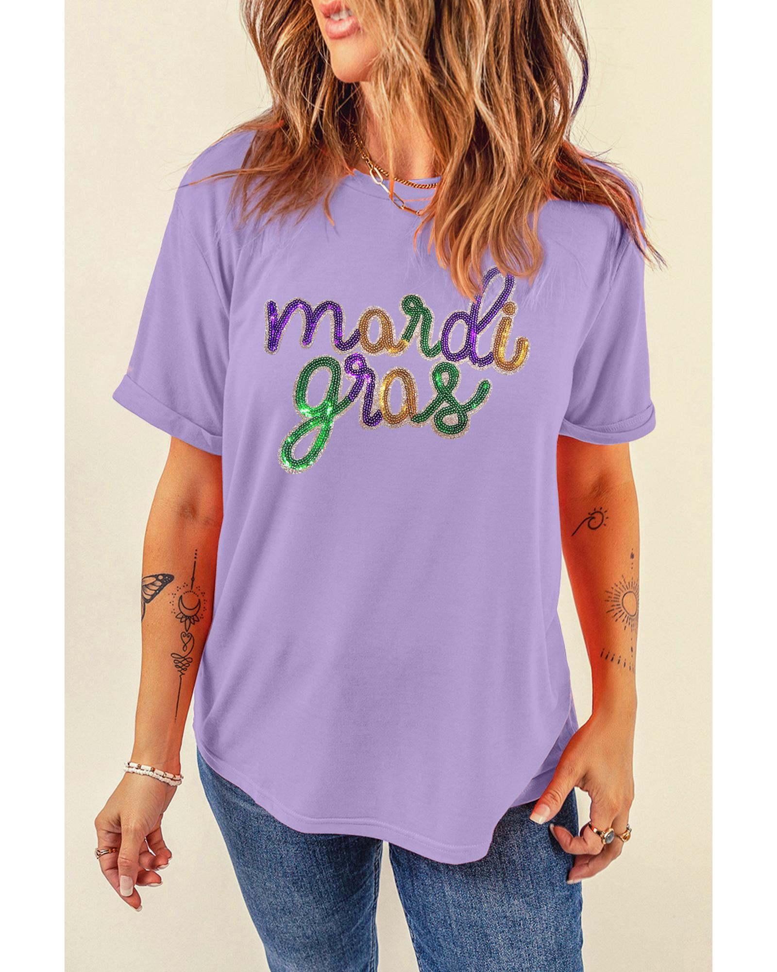 Wisteria Sequin mardi gras Graphic T Shirt – XL