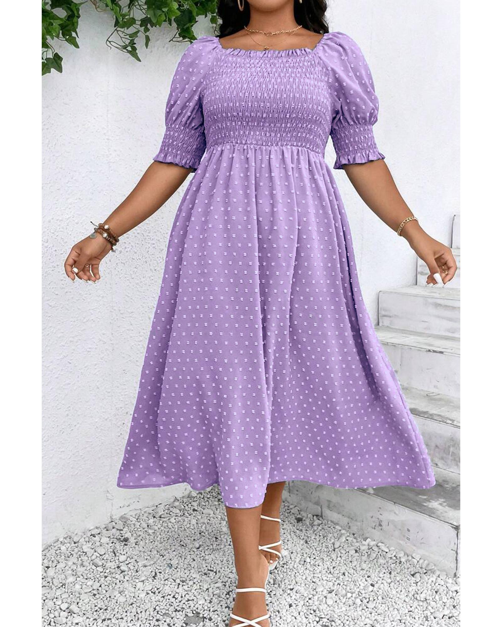 Wisteria Swiss Dot Smocked Frilled Neckline Short Sleeve Plus Size Dress – 1X