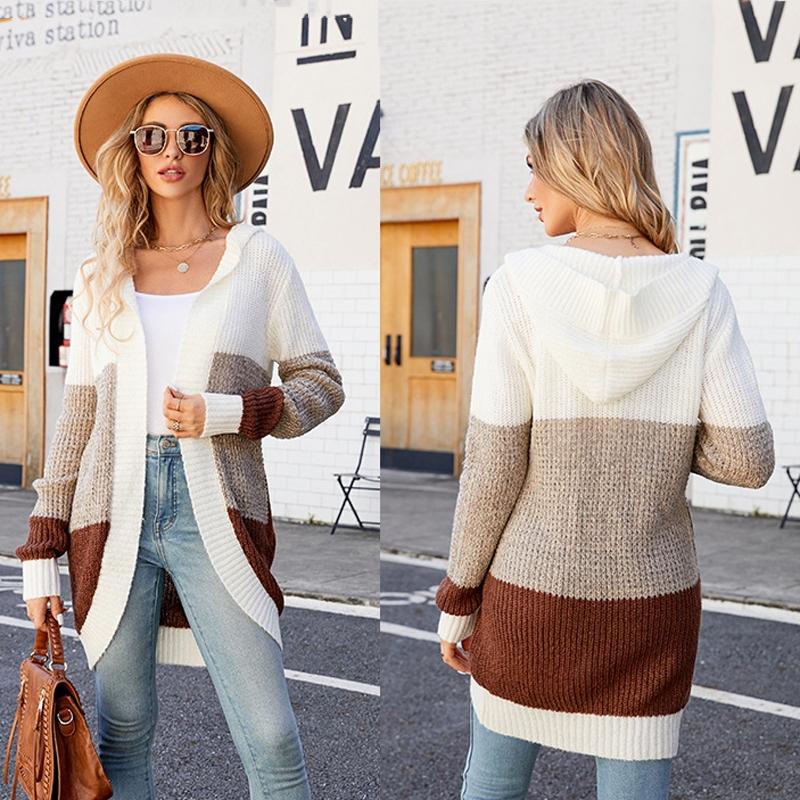 • 1 x Women Casual Mid-Length Hooded Knit Cardigan Jacket