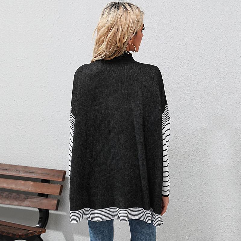 • 1 x Women Long Sleeve Mock Neck Striped Knit Sweater Casual Tops Black