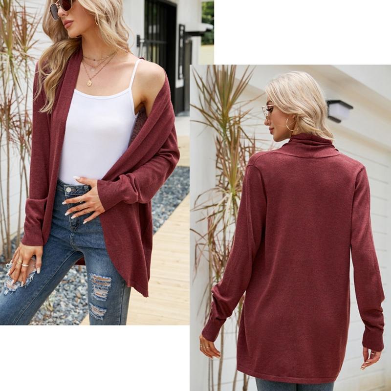 Women Mid-Length Sweater Jacket Temperament Loose Knitted Cardigan - Wine Red - S Original price was: $89.99.Current price is: $48.99.