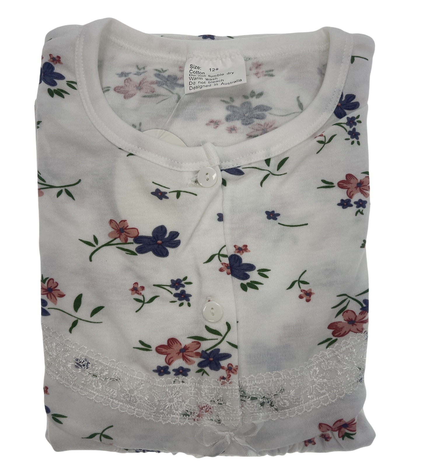Womens Ladies Cotton Nightie Night Gown Slip Petticoat PJs Sleepwear Dress – White/Pink – 14