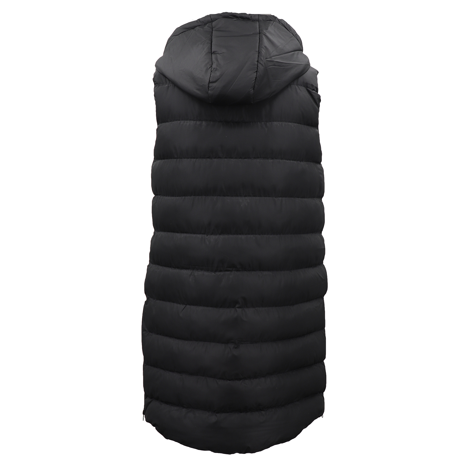 Women’s Longline Padded Vest Hooded Jacket Puffer Puffy Quilted Zip Coat Gilet, Black, 12