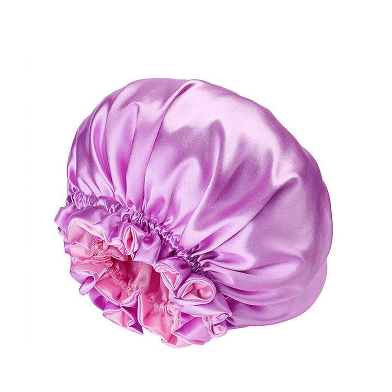 Womens Satin Sleep Cap Bonnet Elastic Wide Band Hair Sleeping Hat – Purple
