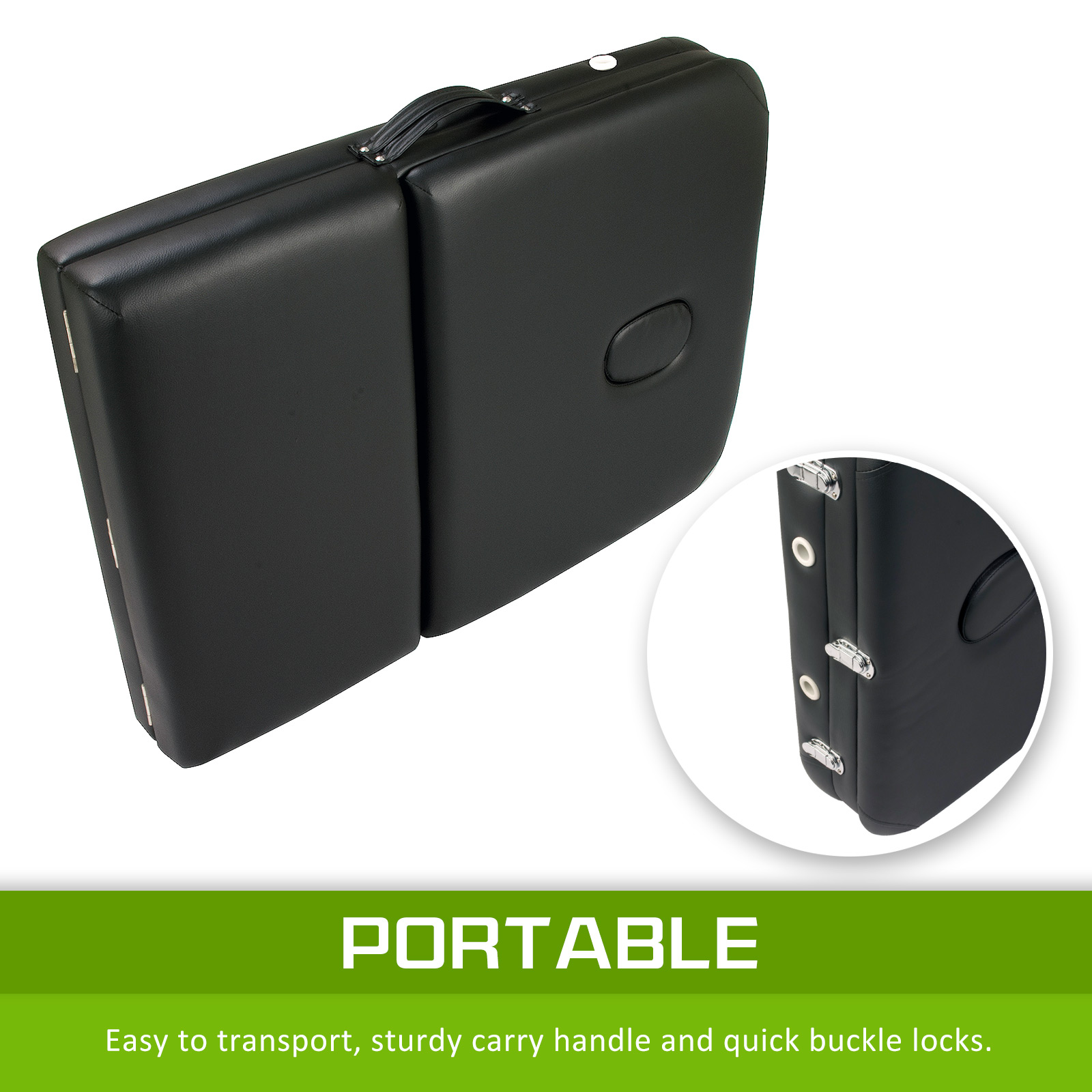 Forever Beauty Portable Massage Table Bed 3 Fold 70cm Wooden Therapy Waxing – Black