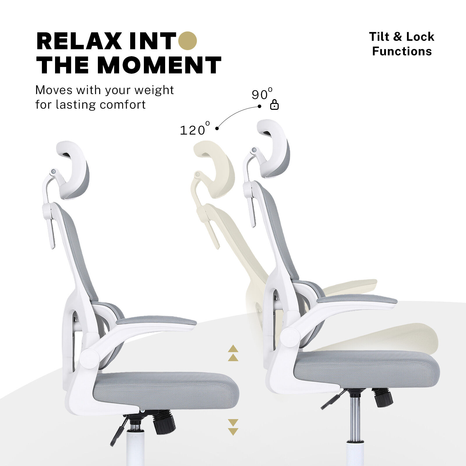 Work Office Chair – Lumber Support, Flip-up Armrest, Adjustable Headrest SITIO – GREY