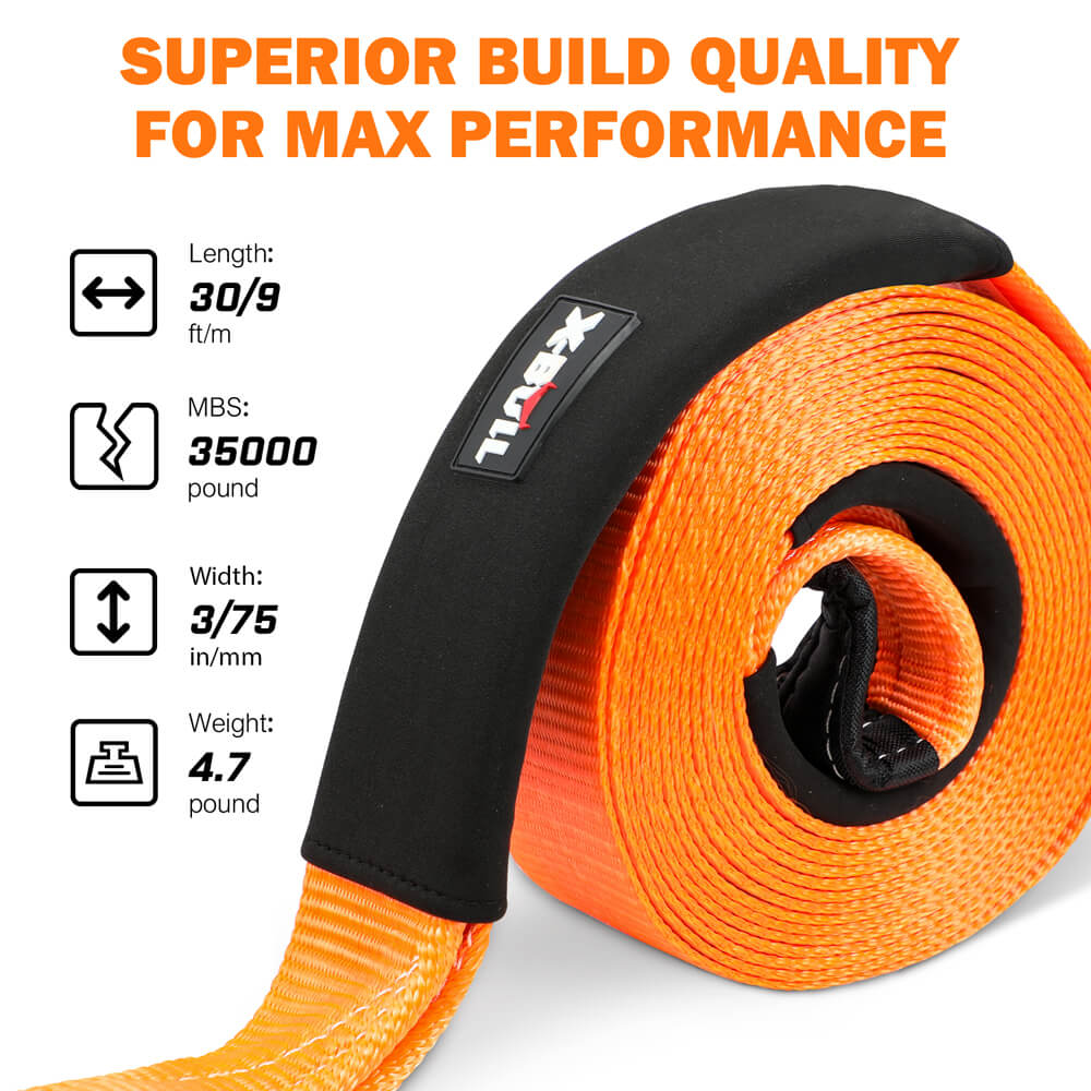 A9-meter tow strap for winch in go rtowing your vehicle.