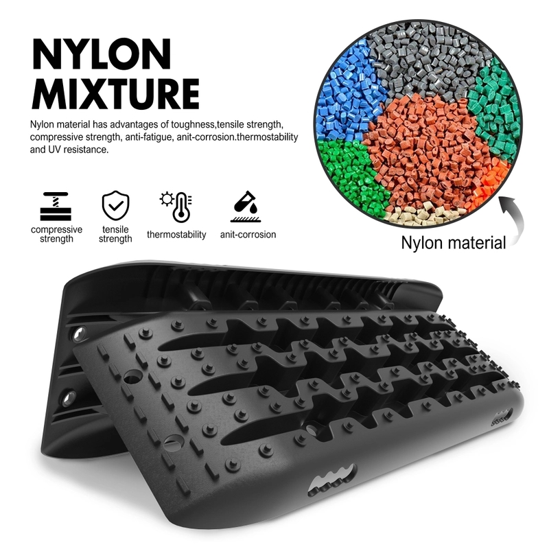 The unique u-shaped reinforced design on the surface increases the stability of the produce,the design of spike effectively prevents side slip when the vehicle gets stuck.