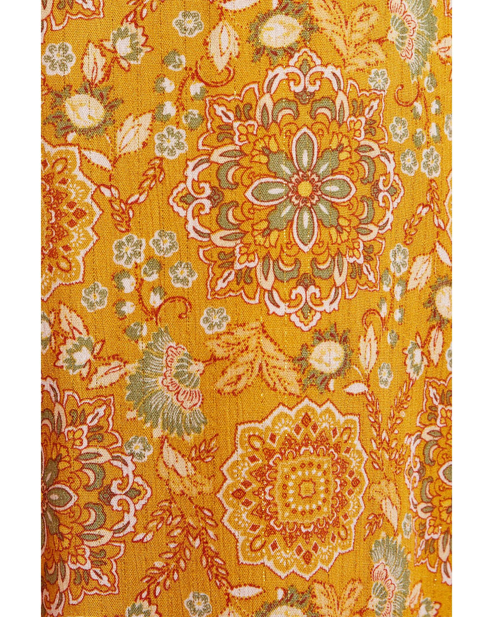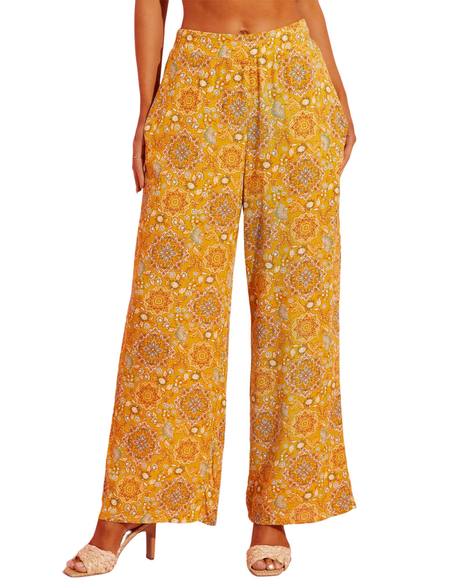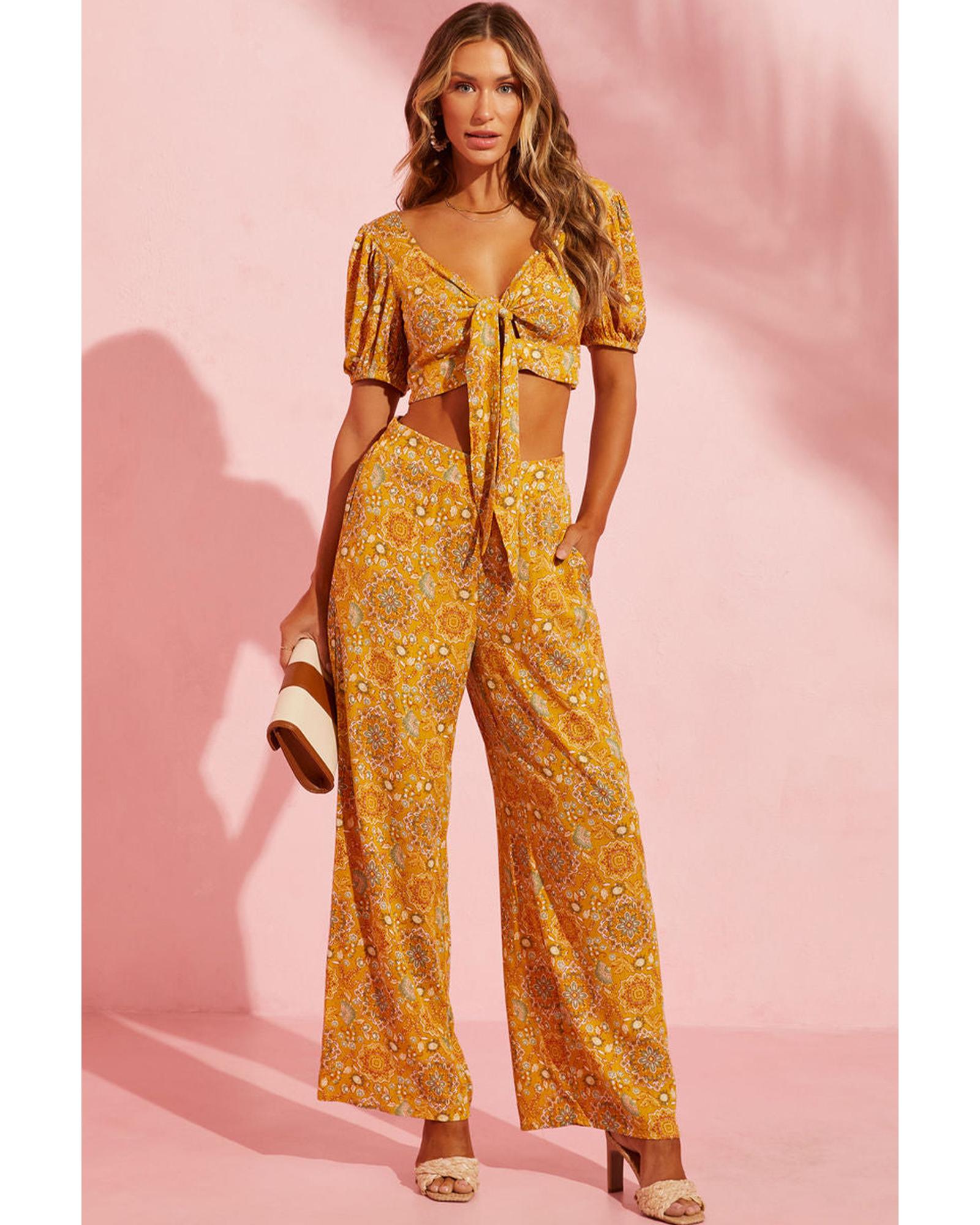 Yellow Bohemian Floral Print Pocketed Wide Leg Pants – L