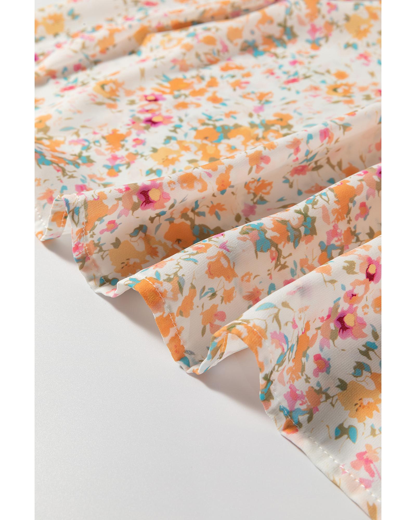 Yellow Boho Floral V Neck Ruffled Empire Waist Long Sleeve Mini Dress – L