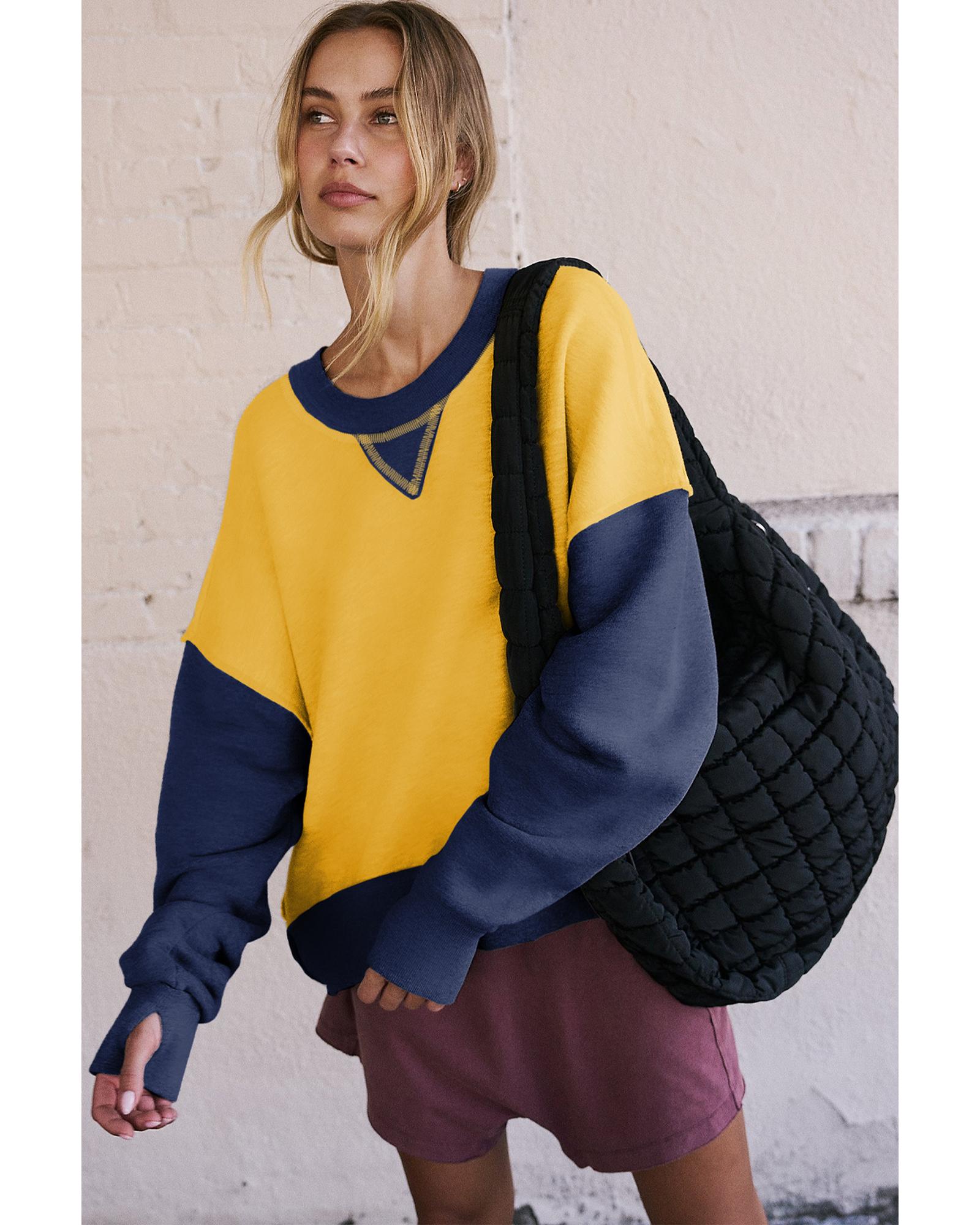 Yellow Color Block Thumbhole Sleeve Drop Shoulder Sweatshirt – 2XL