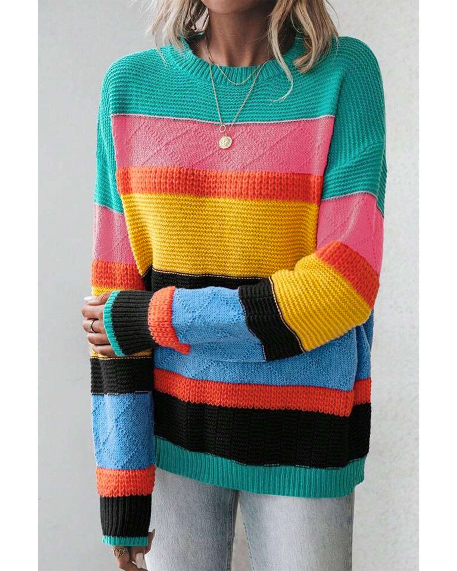 Yellow Colorblock Mixed Textured Drop Shoulder Sweater – XL
