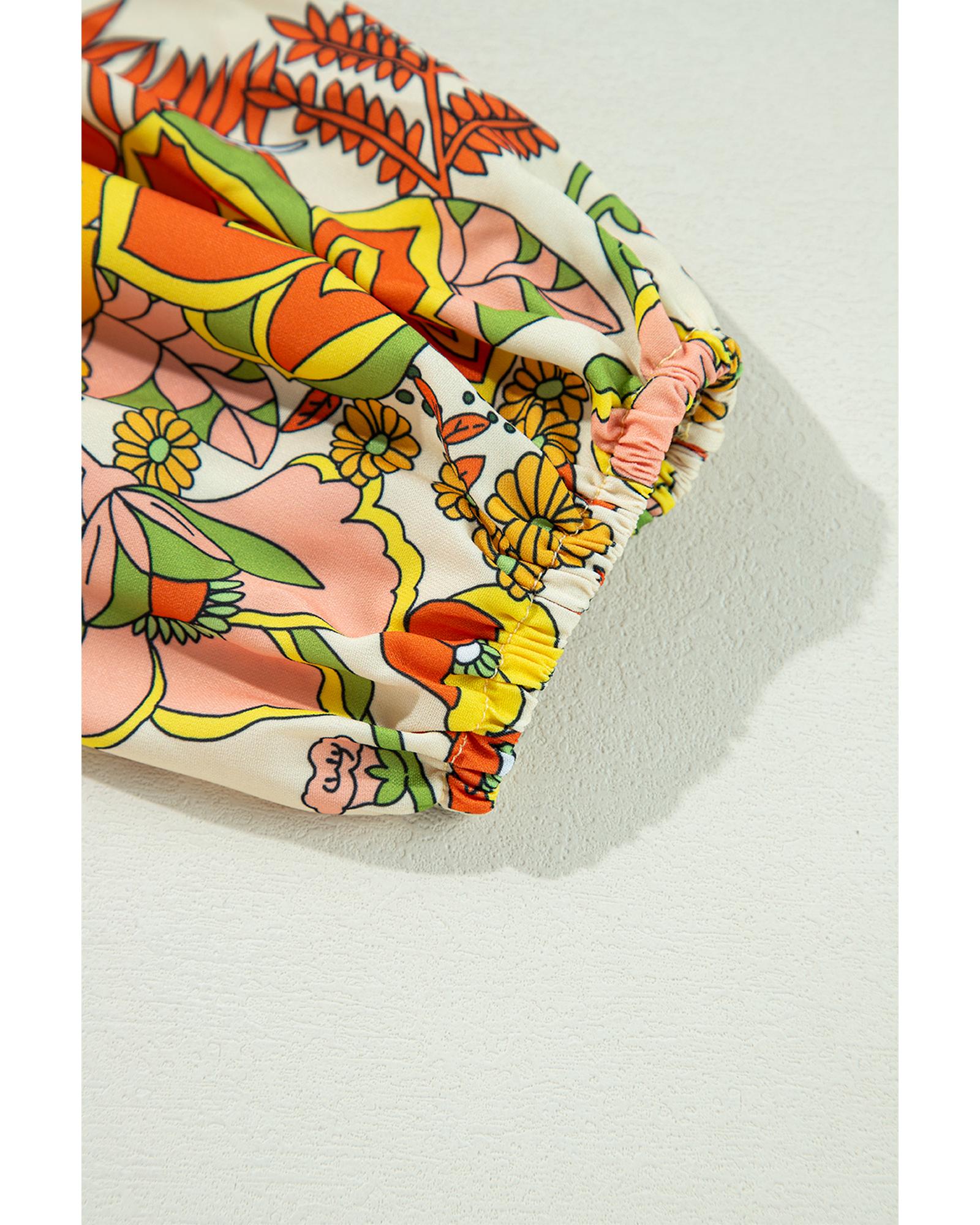 Yellow Cream Floral Print V Neck Puff Sleeve Mini Dress – XL