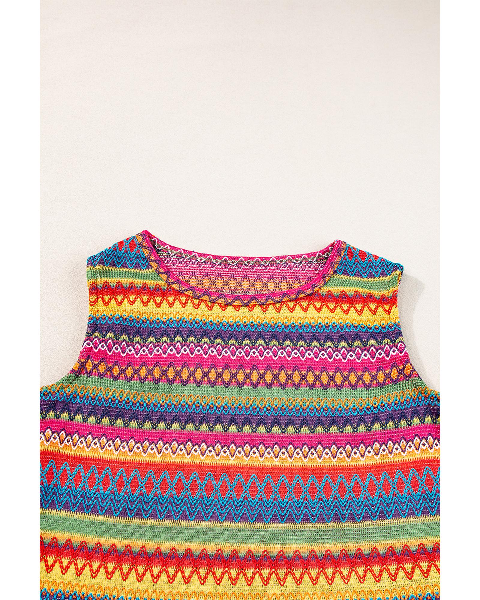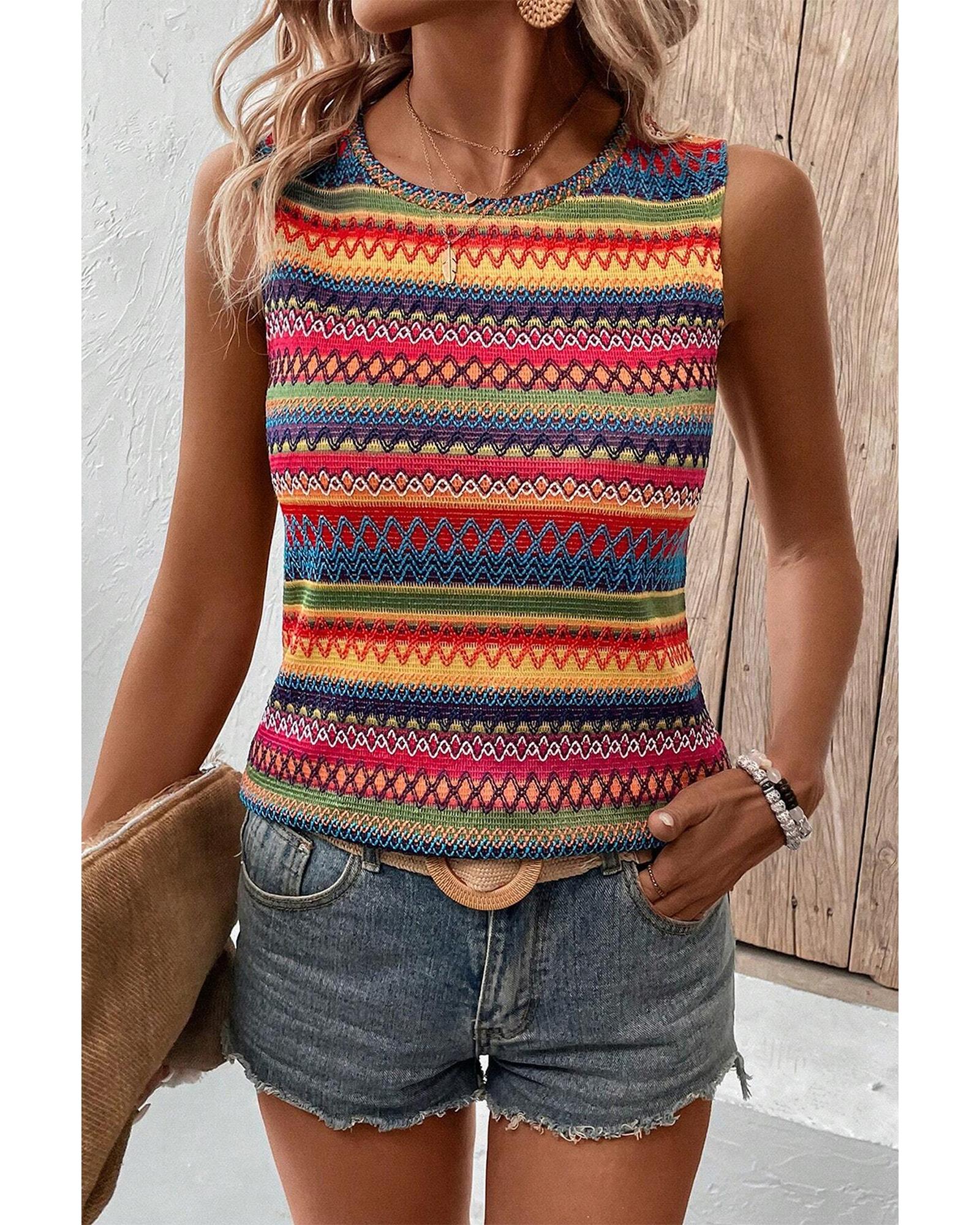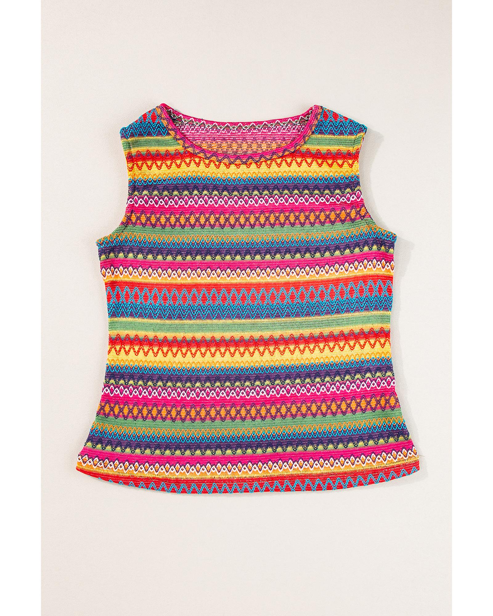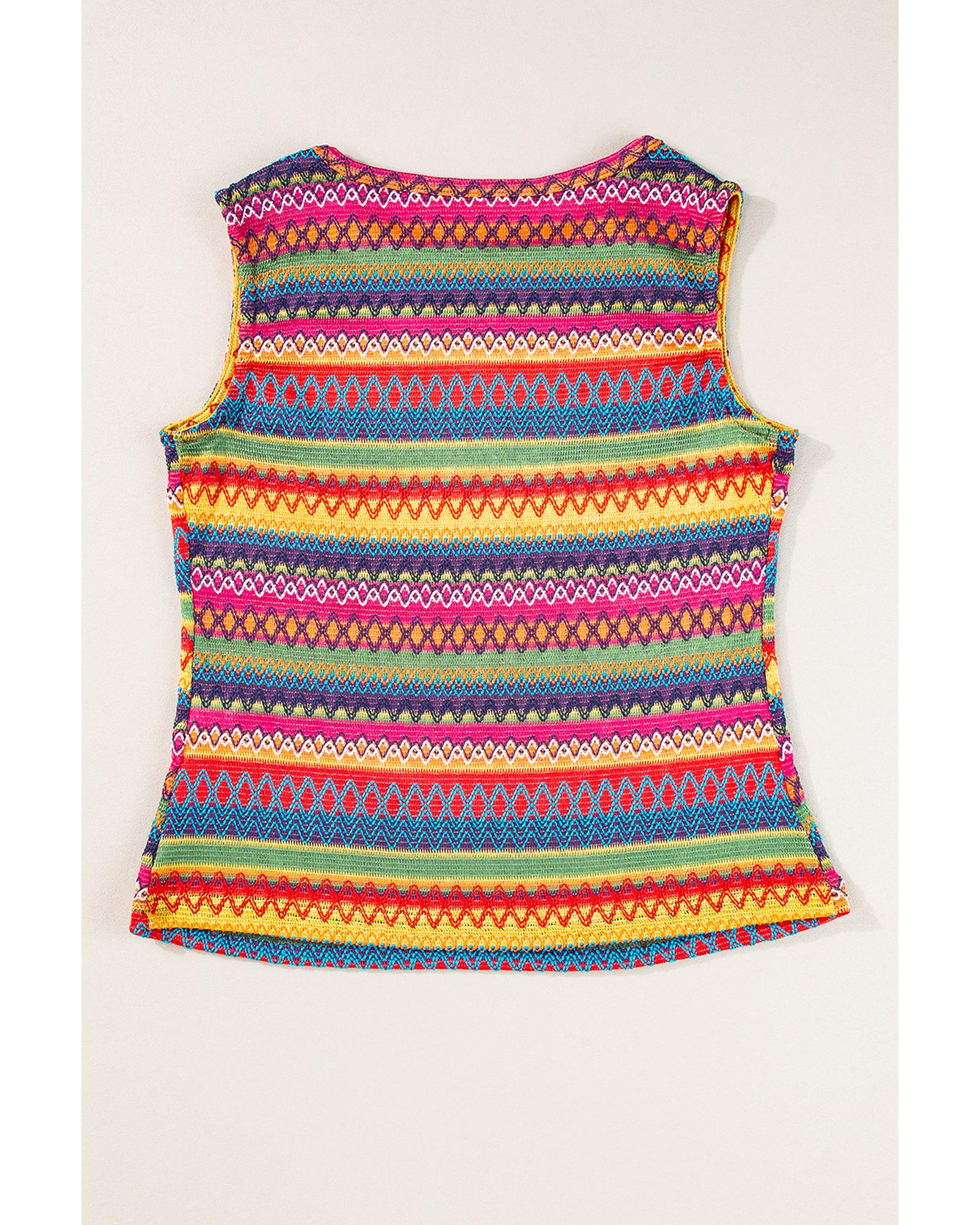 - Yellow Ethnic Wavy Pattern Round Neck Sleeveless Top