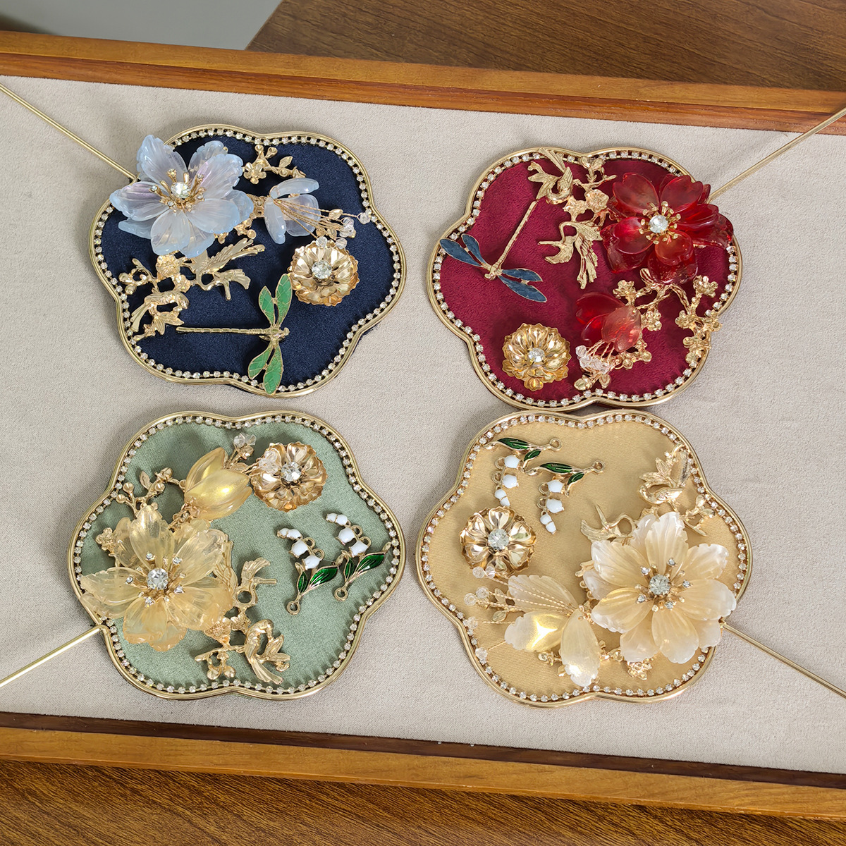 - Elegant & Intricate Design: Inspired by traditional Chinese aesthetics, each fan features beautiful floral embroidery, shimmering faux pearls, and a delicate dragonfly embellishment, all set against a rich fabric background.
