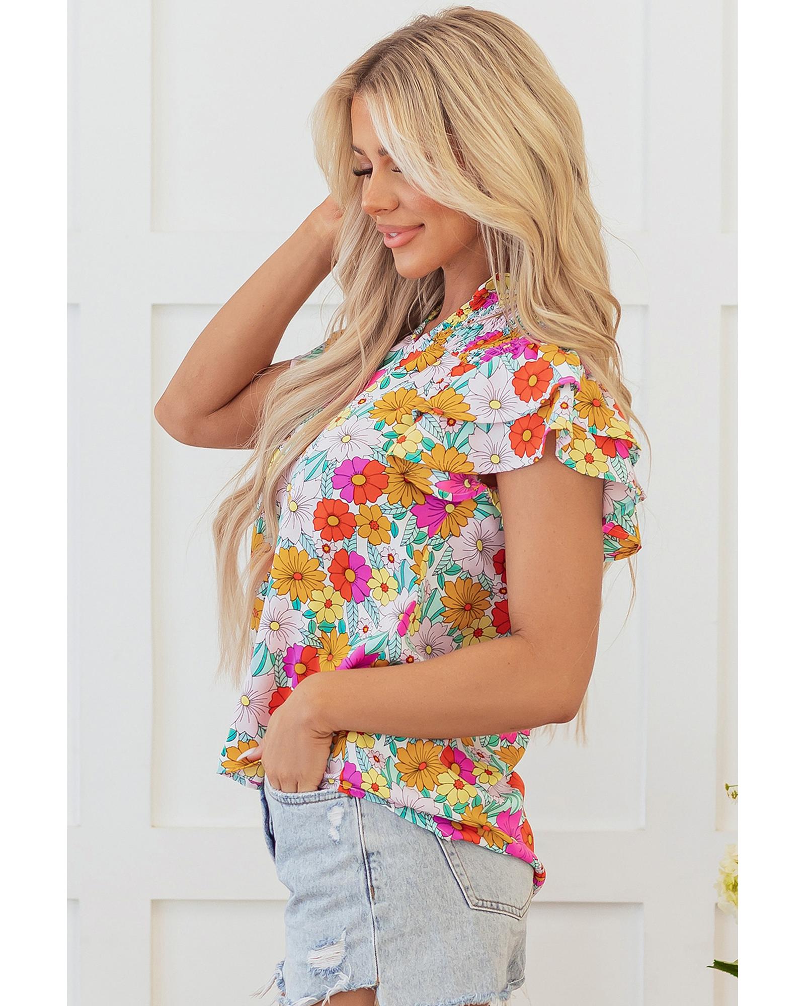 - Yellow floral print blouse