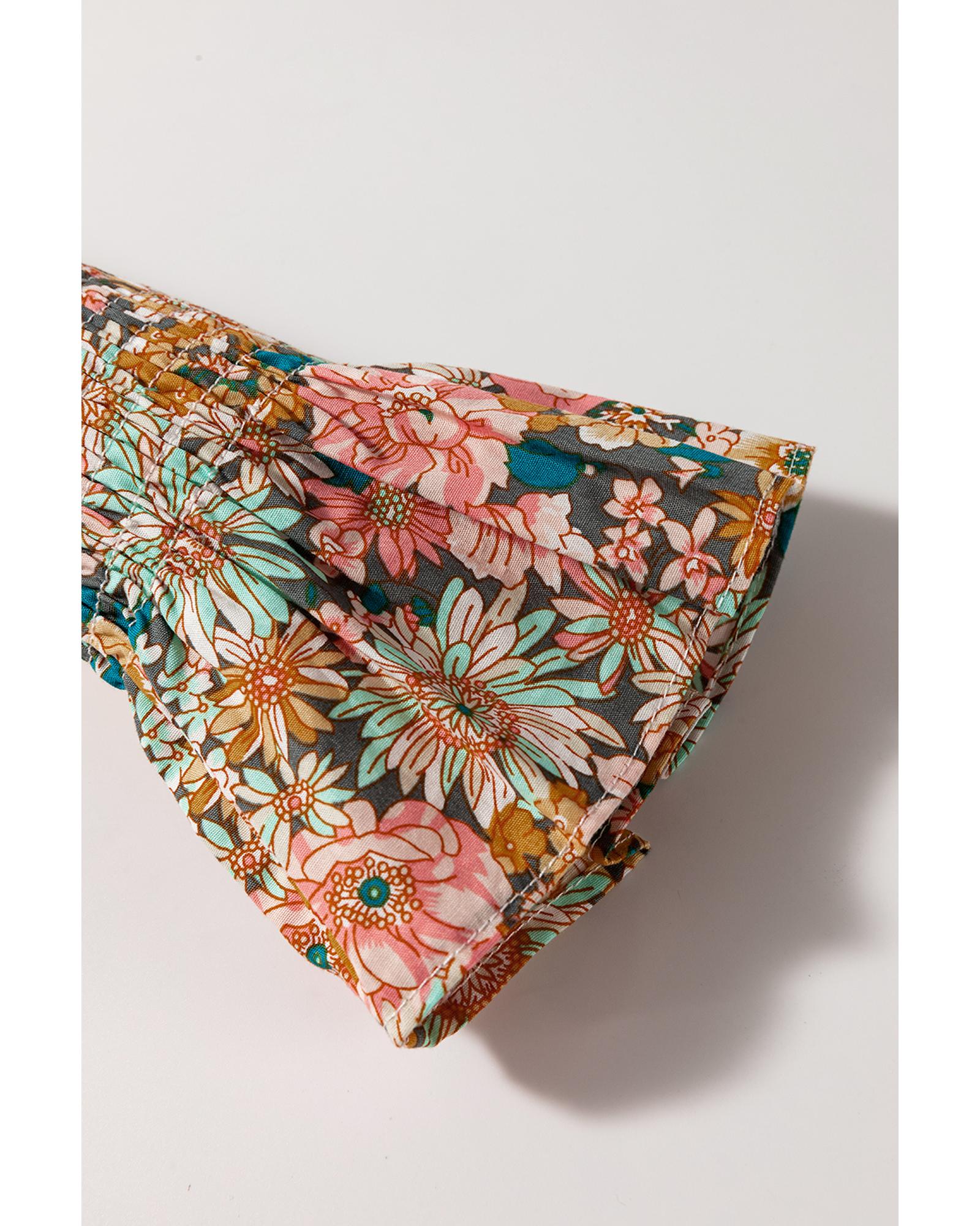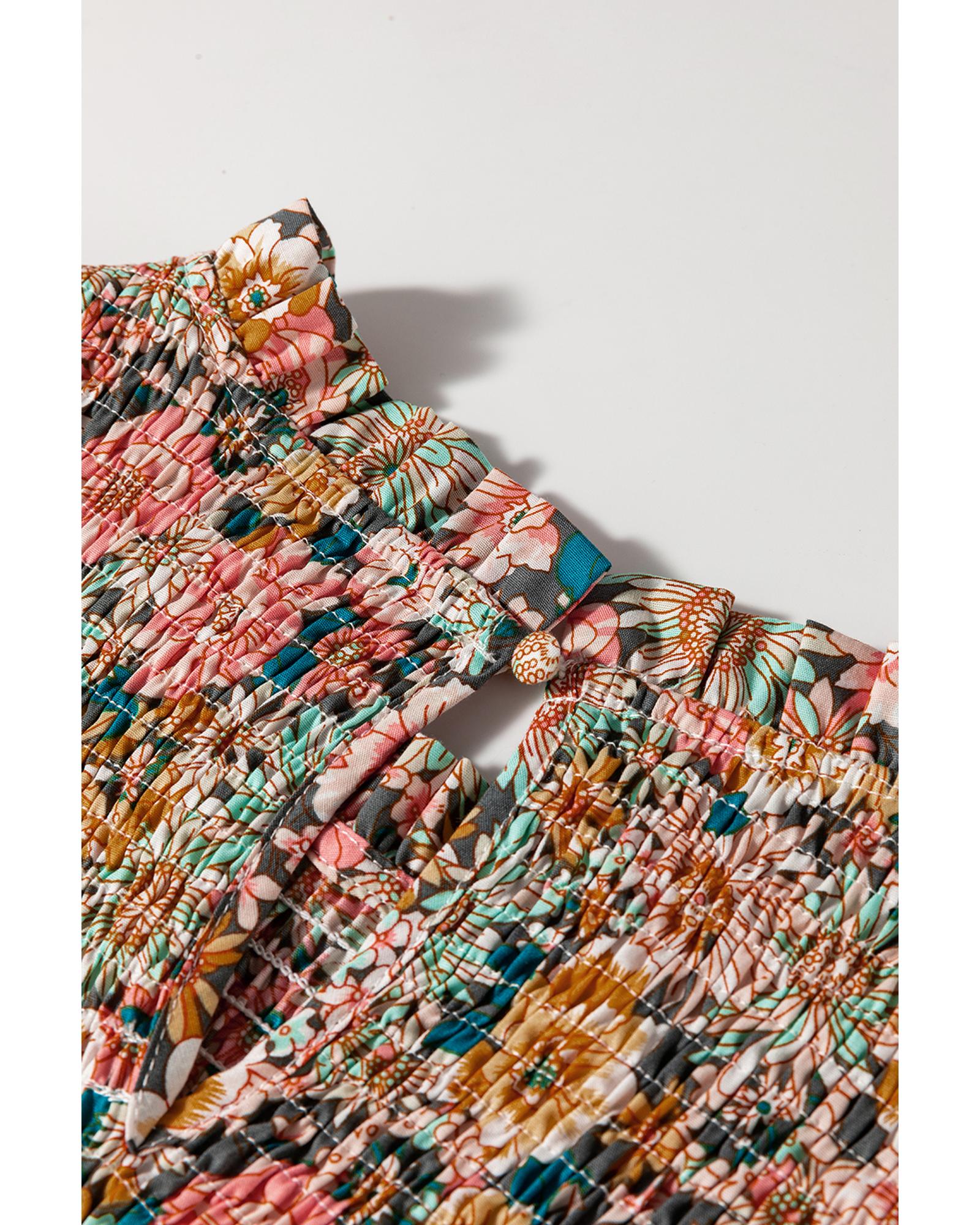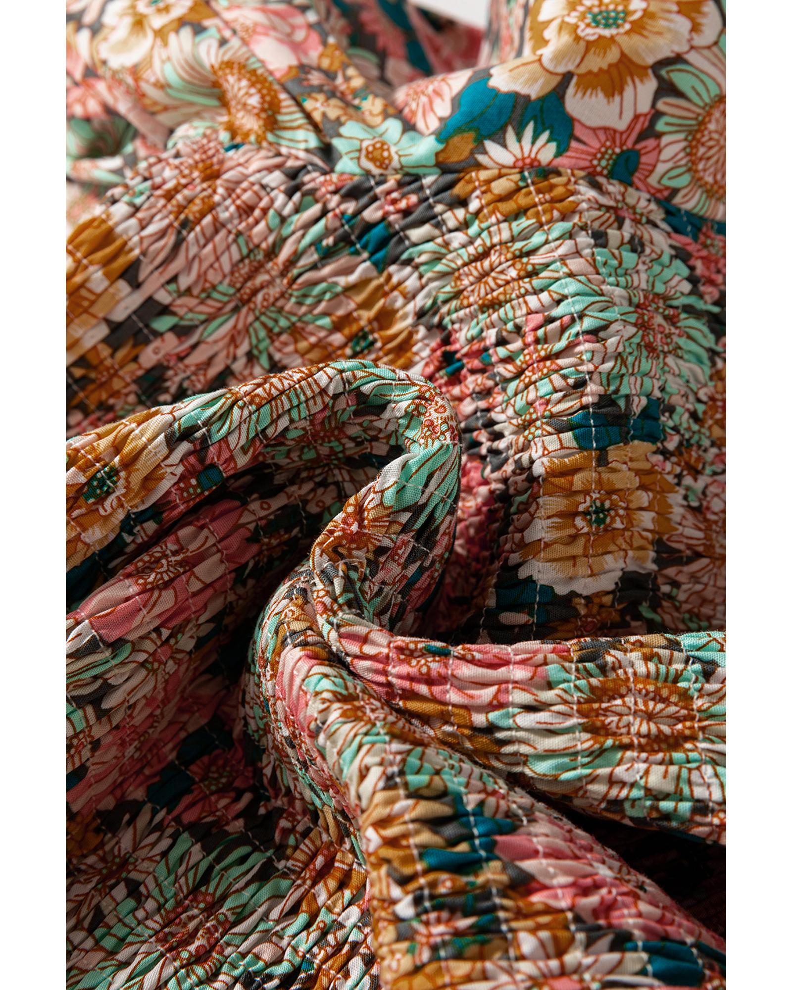 Yellow Floral Print Smocked Bubble Sleeve Ruffled Crop Top – M