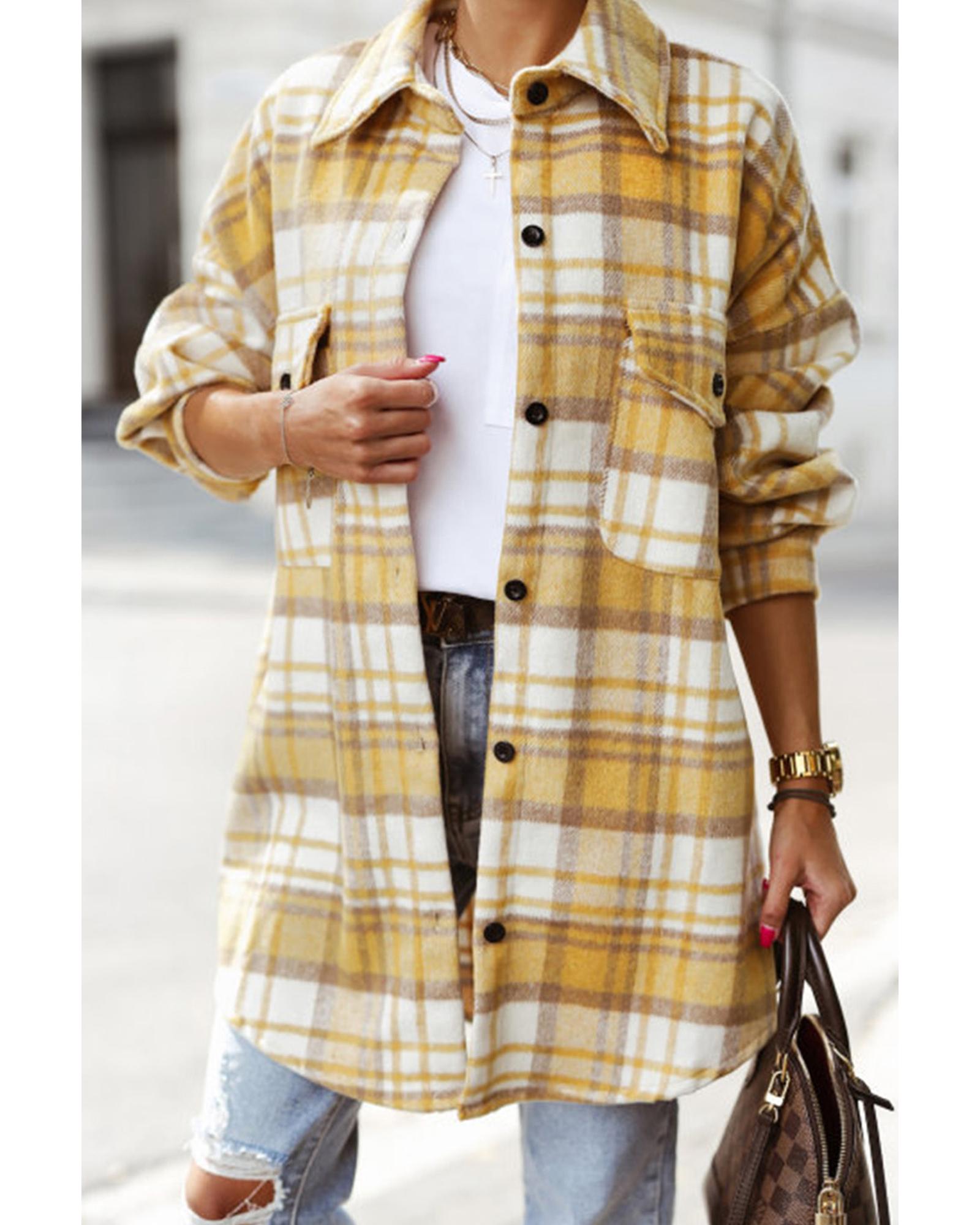 Yellow Plaid Flap Pocket Long Sleeve Shacket – S