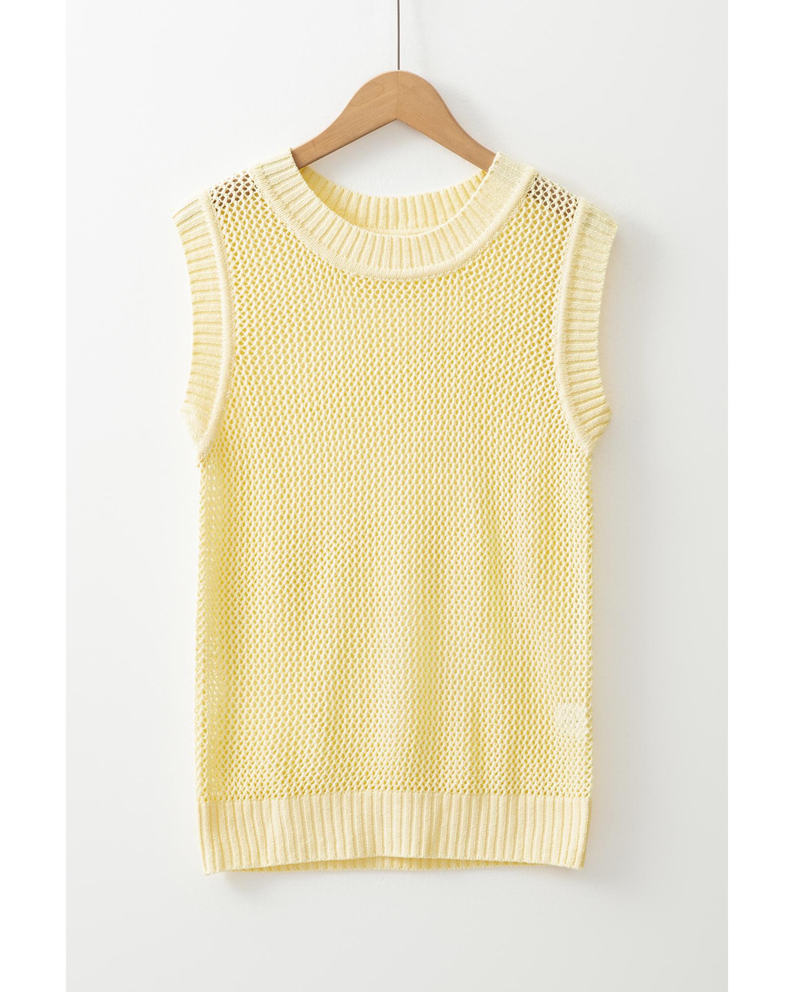 Yellow Solid Color Hollowed Knit Round Neck Sweater Vest – M