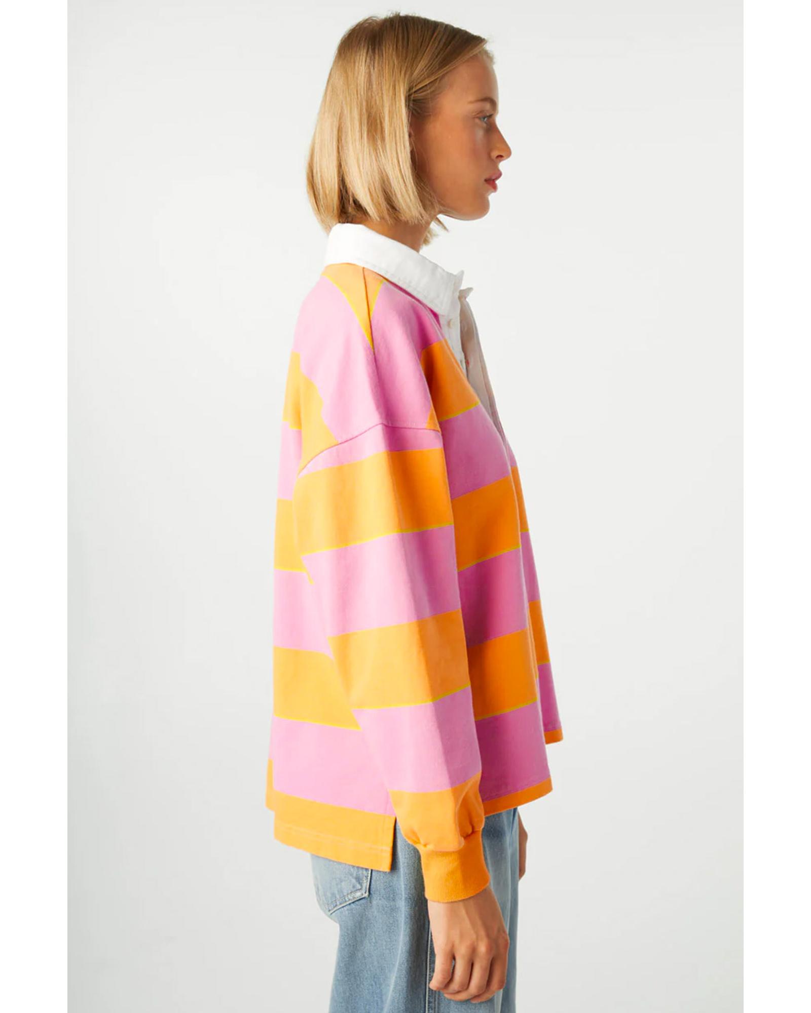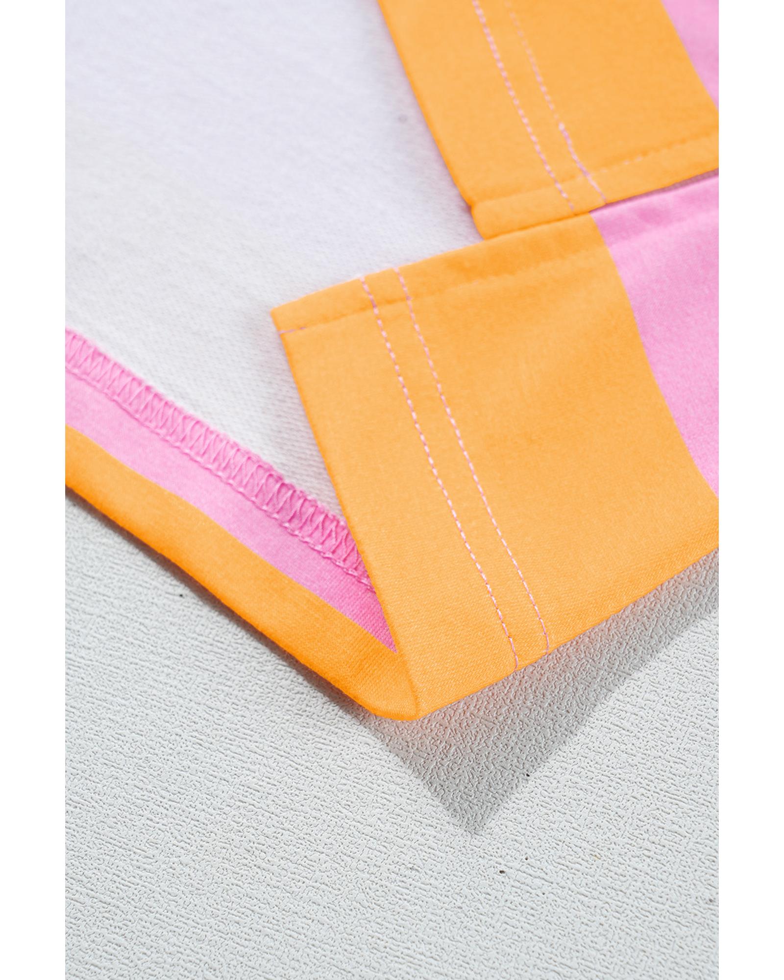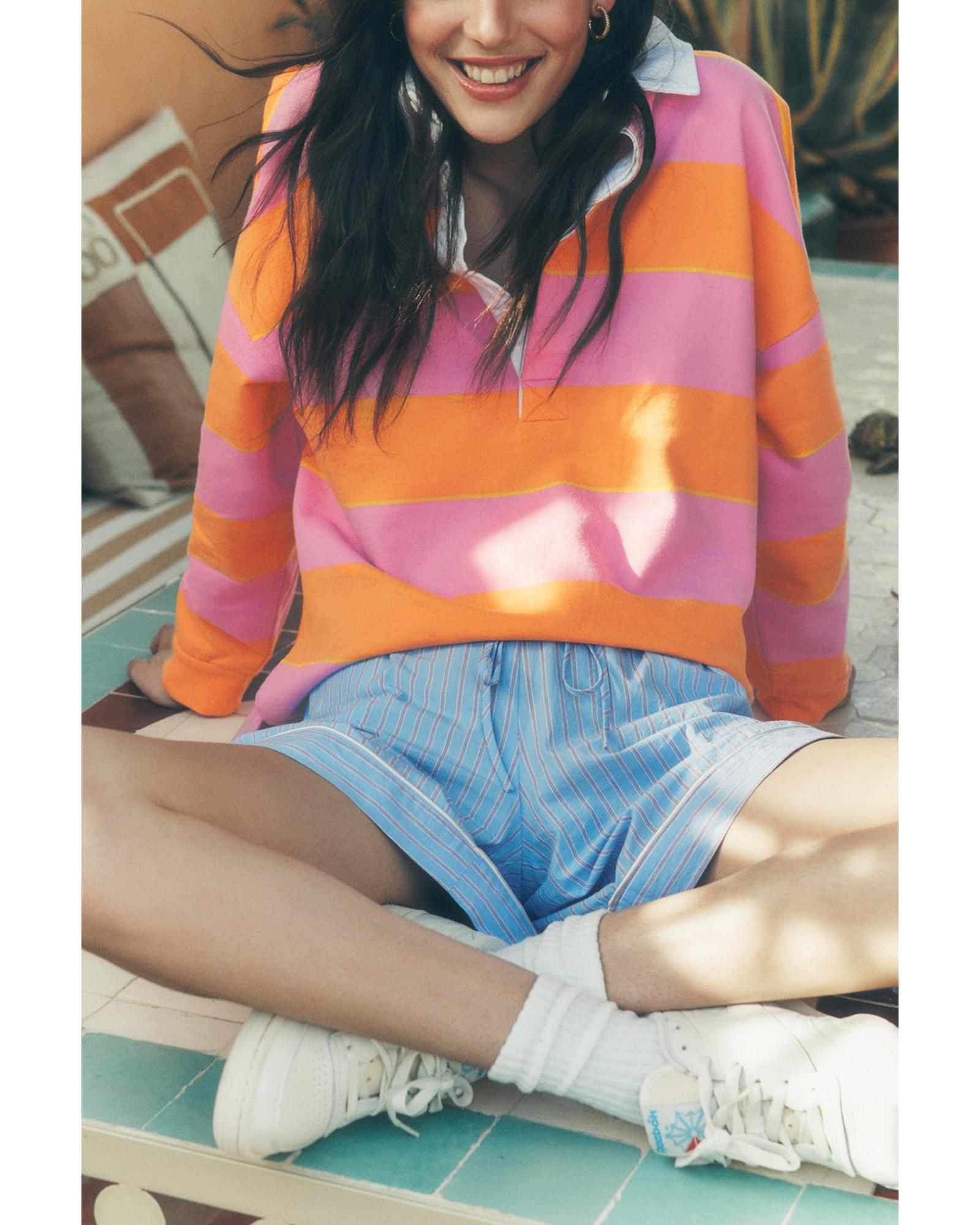 Yellow Stripe Color Block Polo Collar Sweatshirt – M