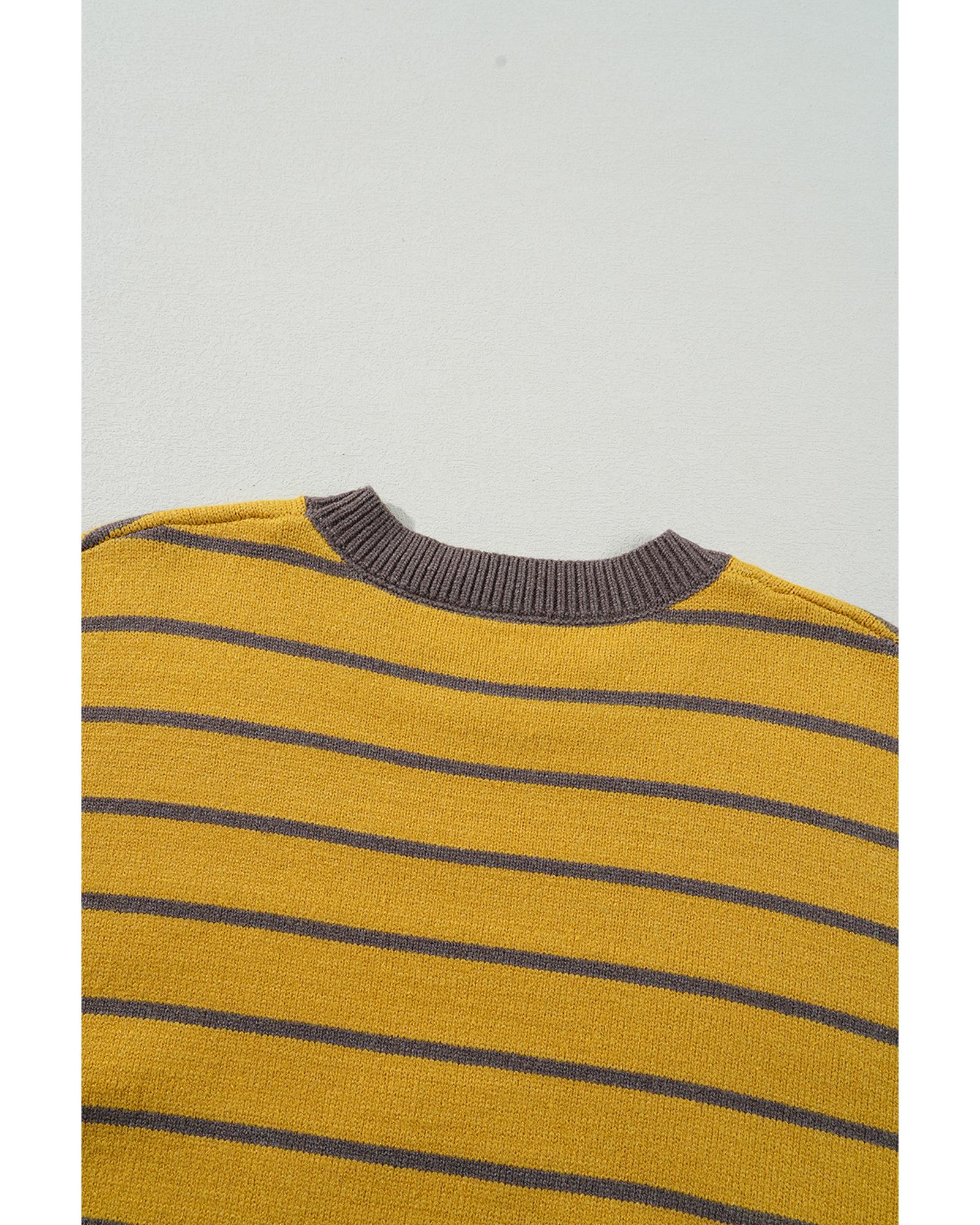 - Yellow Stripe Daisy Floral Knitted Round Neck Sweater