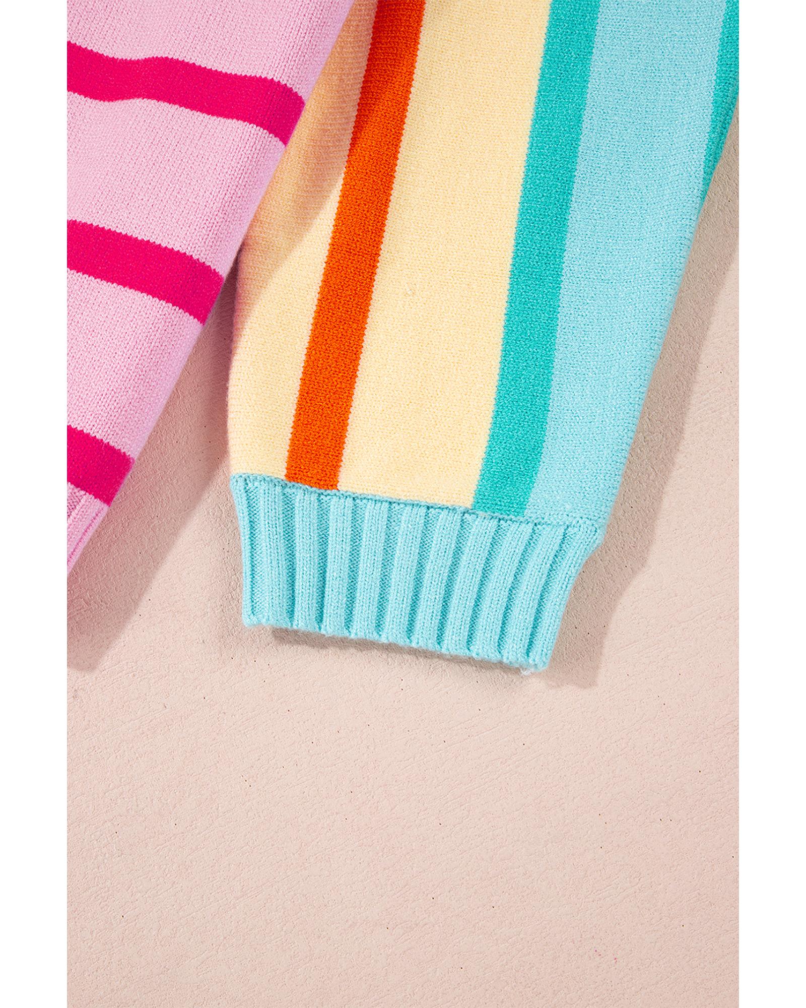 Yellow Stripe Gradient Striped Ribbed Edge Loose Sweater – XL