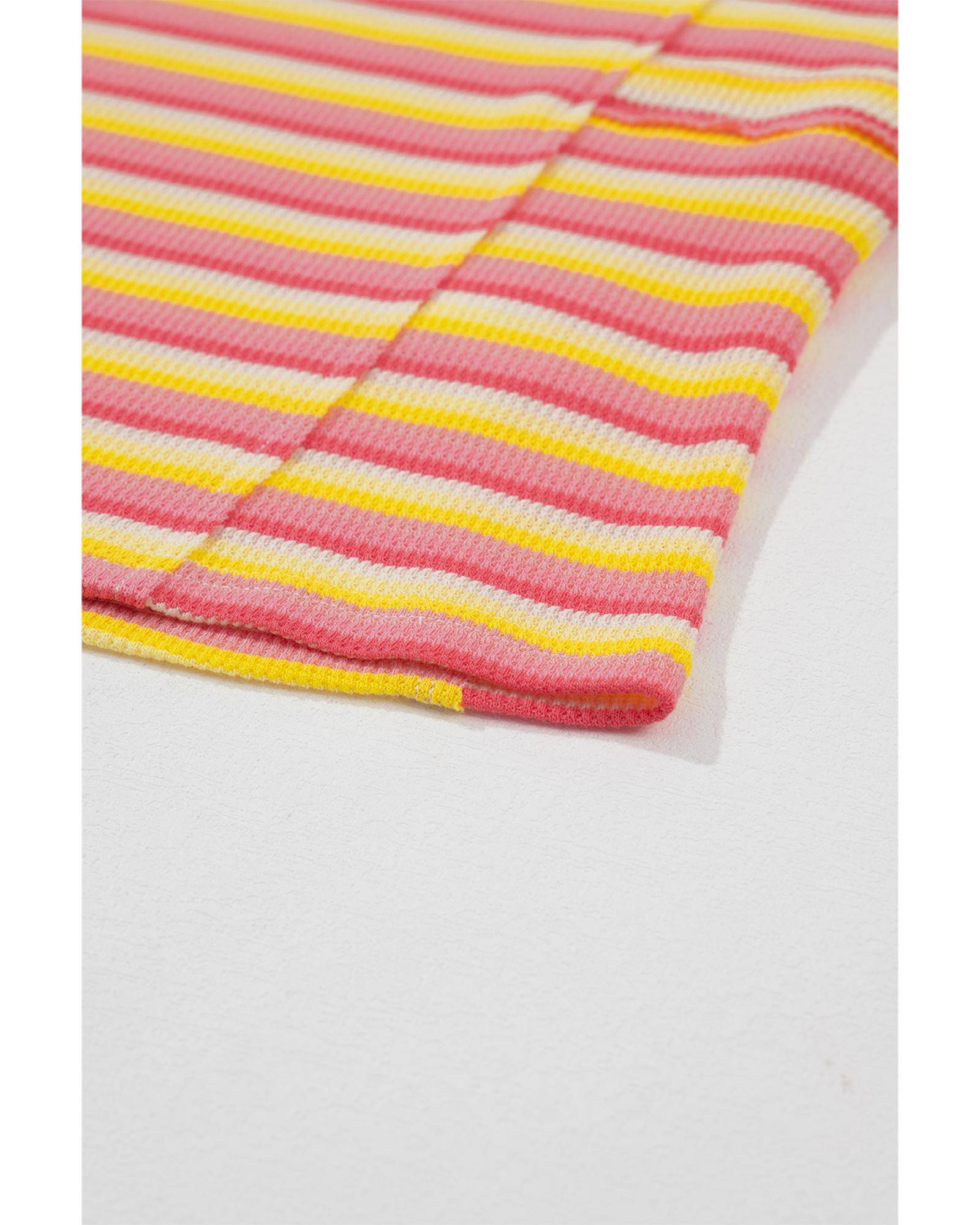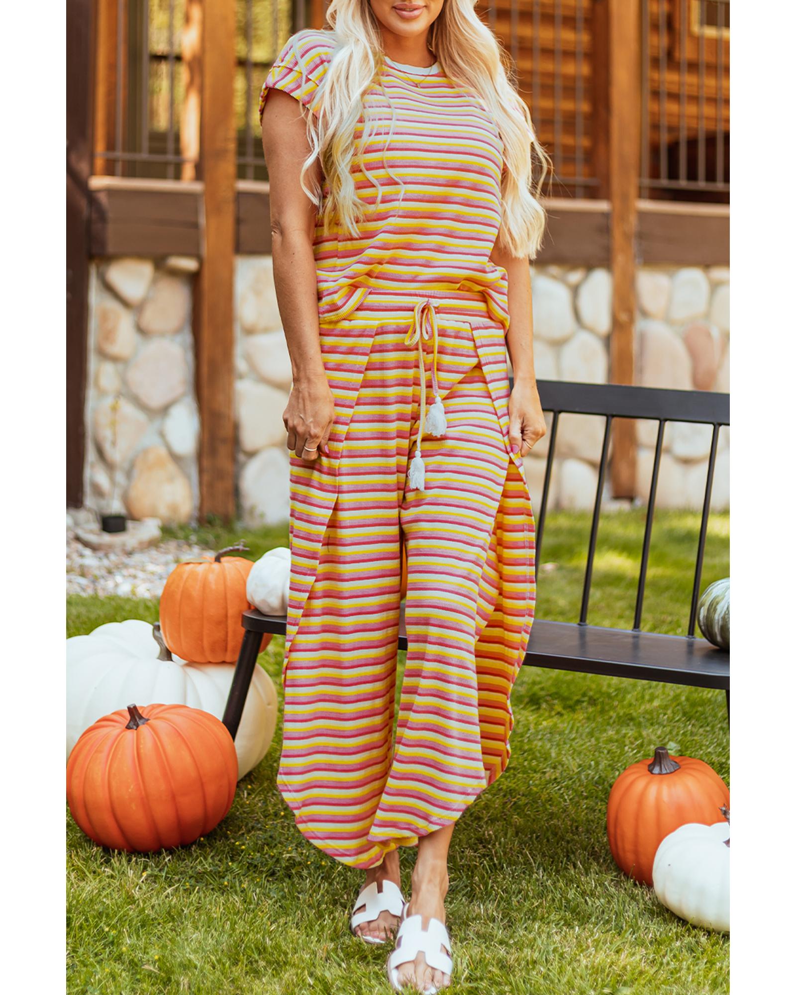 Yellow Stripe Rainbow Tee Tasseled String Wide Leg Pants Set – L