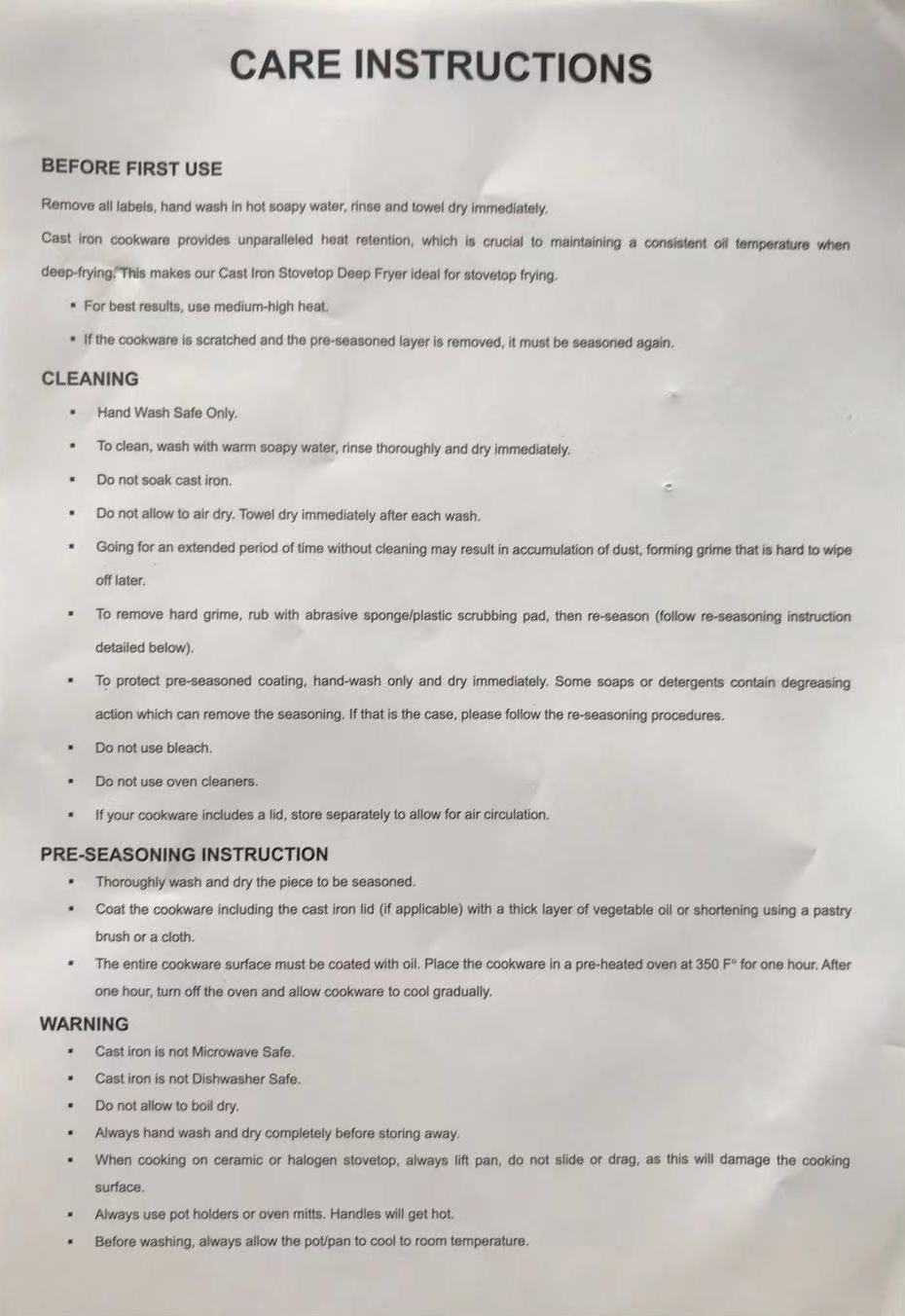- It has no chemical non-stick coasting, only with vegetable oil spraying for simple rust protection.