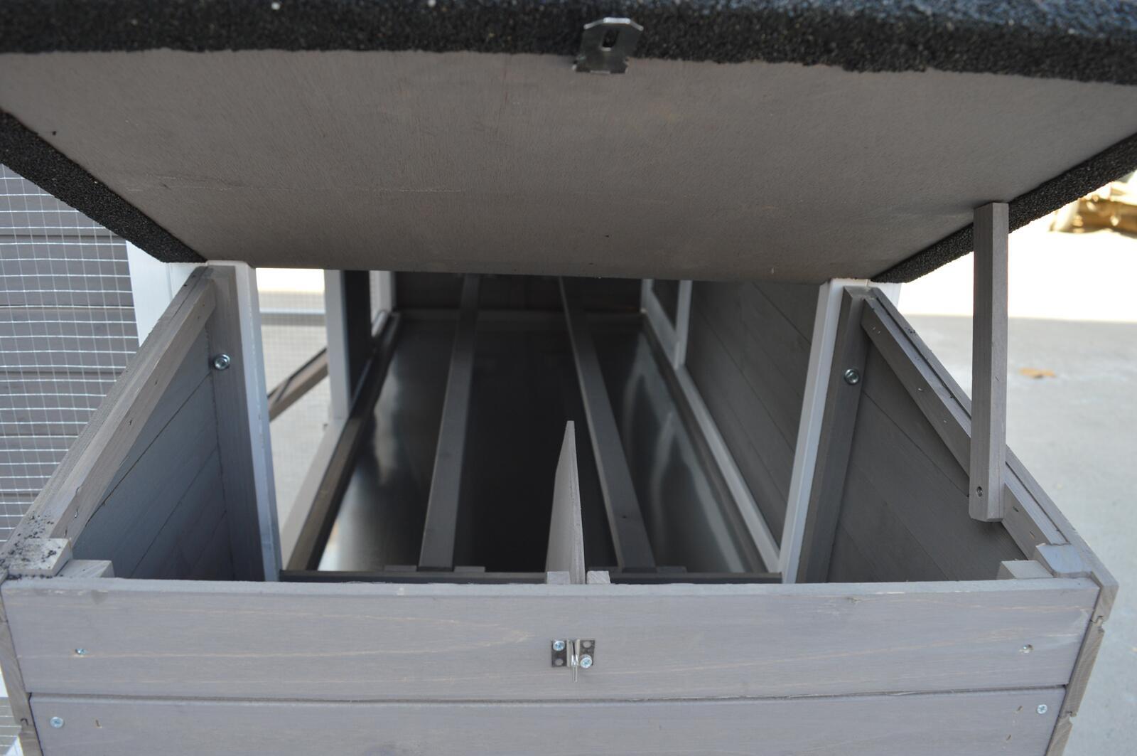• The integrated nesting box and the roof of the nesting box can be opened for collecting eggs