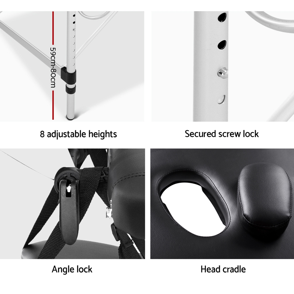Zenses Massage Table 70cm Portable 3 Fold Aluminium Beauty Bed Black Original price was: $250.99.Current price is: $135.99.